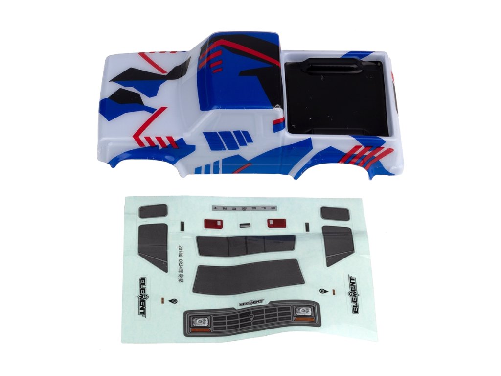 Bílá lexanová karoserie včetně přiložených samolepek.