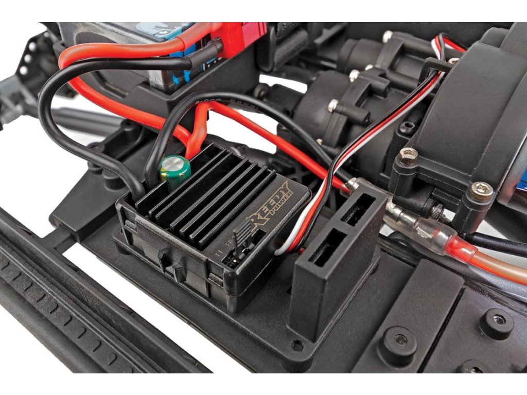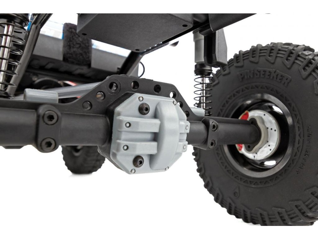Kola a pneumatiky: O trakci ve všech čtyřech rozích se stará sada 1,9" kol Steelie se zámkem patek a pneumatik PinSeekerTM o rozměrech 1,9" x 4,19". Tyto pneumatiky s agresivním dezénem jsou ideální pro zachycení každého zákoutí ve skalách nebo proorání hustého bláta a písku.
