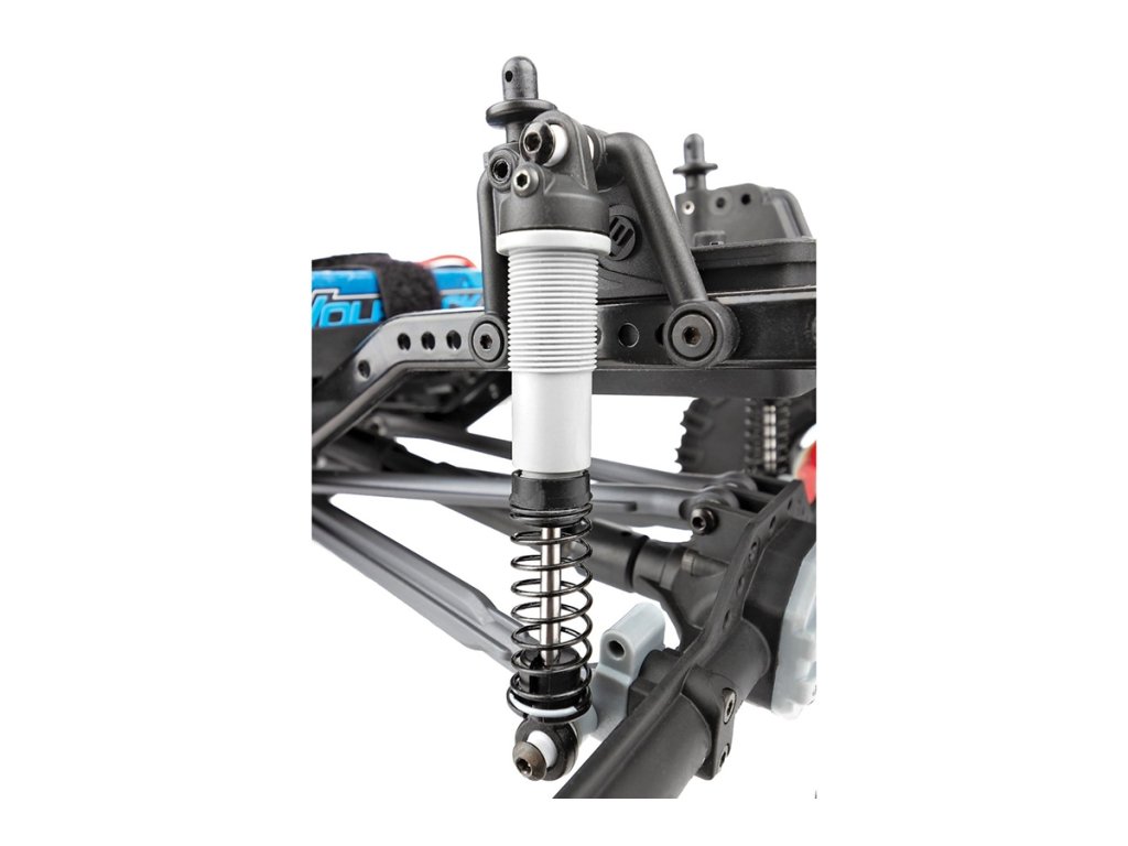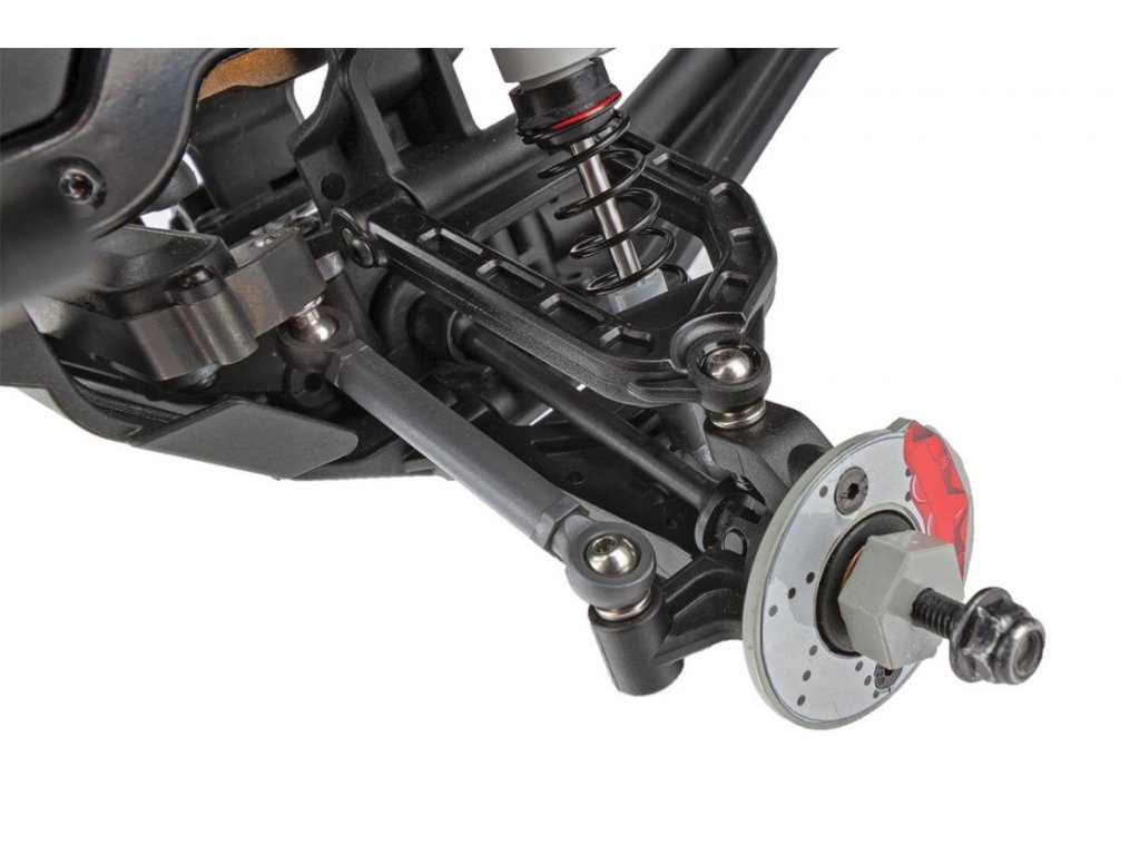 Aktualizovaná zadní náprava má více hřebenů a podpěr pro větší odolnost a je vybavena větším vstupním pouzdrem schopným zvládnout vyšší zatížení. Nově přepracovaný systém IFS zlepšuje ovladatelnost, světlou výšku a výkon s ultraškálovým vzhledem. V celém hnacím ústrojí se také nachází 24 kovových pouzder pro dlouhotrvající, spolehlivý a bezúdržbový hnací systém. Kontrolu nad nerovnostmi mají naše ultrahladké plastové tlumiče se závitem a odvzdušňovacími šrouby pro snadné odvzdušnění a miniaturní pružiny, které udržují těžiště nízko.