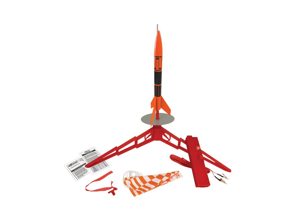Balení obsahuje: odpalovací rampu (Porta-Pad II Launch Pad), odpalovací pult (Electron Beam Launch Controller), raketu, padák, návod CZ, manuál EN.