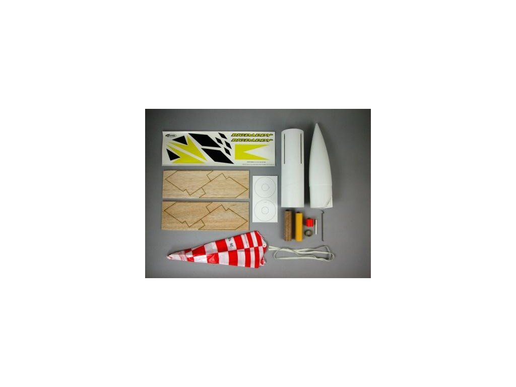 Balení obsahuje: tubus, plastovou špice, držák motoru, stabilizátory, obtisky, padák, návod CZ, manuál EN.