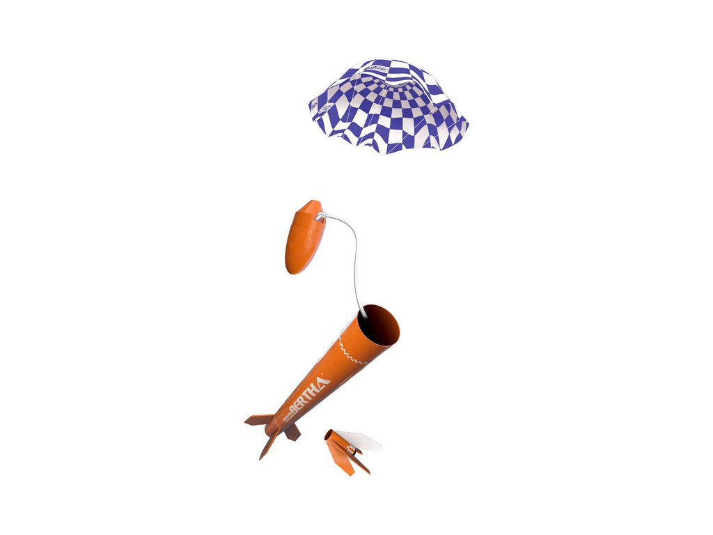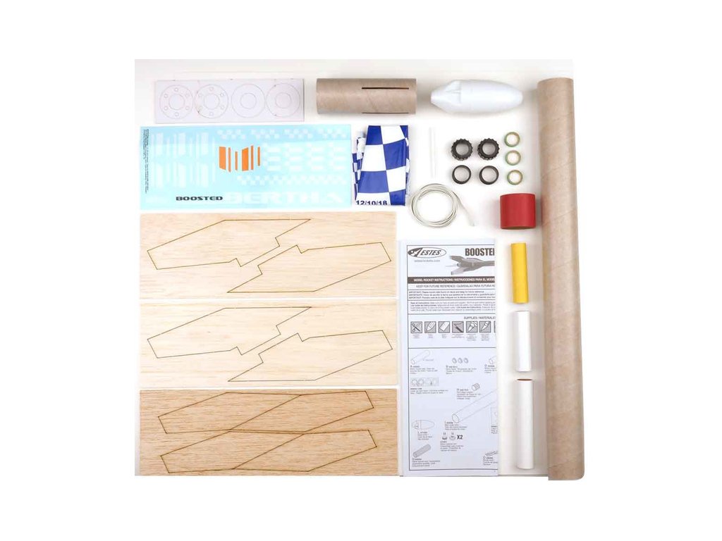 Model rakety Estes Boosted Bertha Kit, na raketové motory řady A a C. Raketa má dva stupně, po dohoření prvního se spodní část oddělí a zažehne se druhý motor. Raketa Boosted Bertha dosáhne výšky až 305 m, bezpečný návrat padákem o velikosti 45,7 cm.