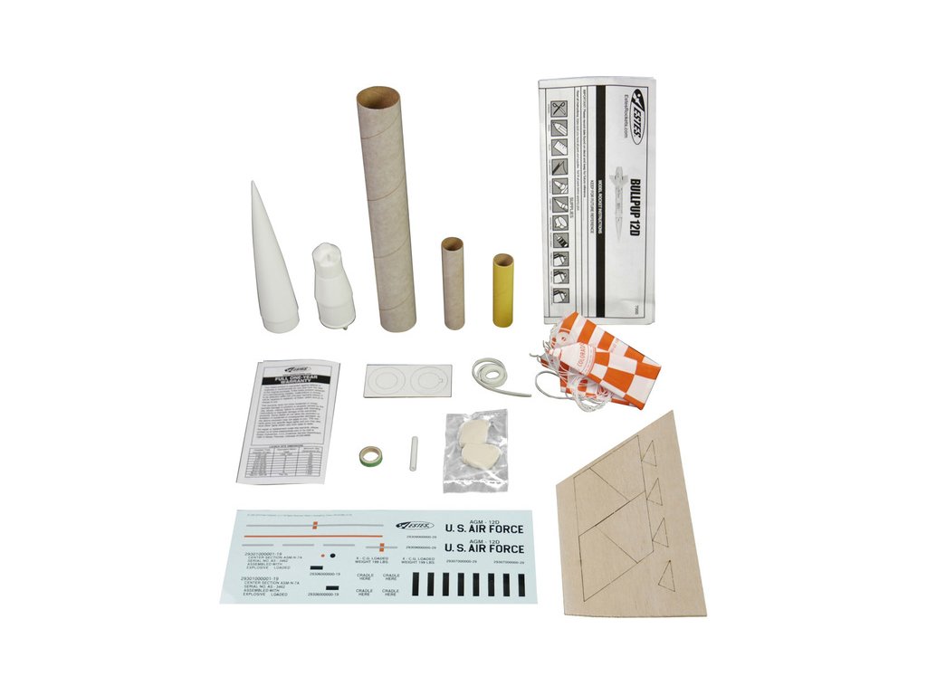 Balení obsahuje: tubus, špici, stabilizátory, držák motoru, obtisky, padák, návod CZ, manuál EN.
