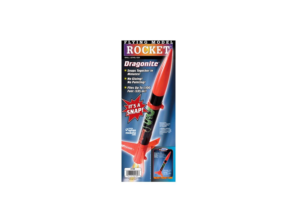 Model rakety Estes na raketový motor řady A - C. Dragonite vám poskytne spoustu veselé zábavy, rychle sestavte raketu a můžete letět! Použijte barevné obtisky a jste připravení ke startu. Model je vhodný pro začátečníky! Výška letu je až 282 m.
