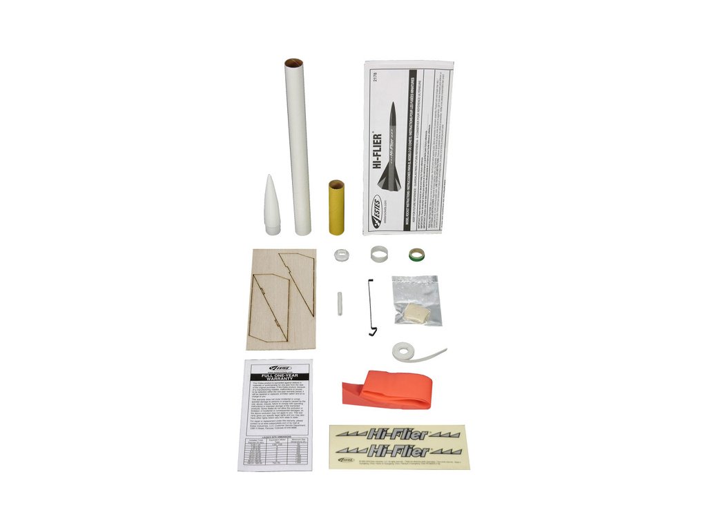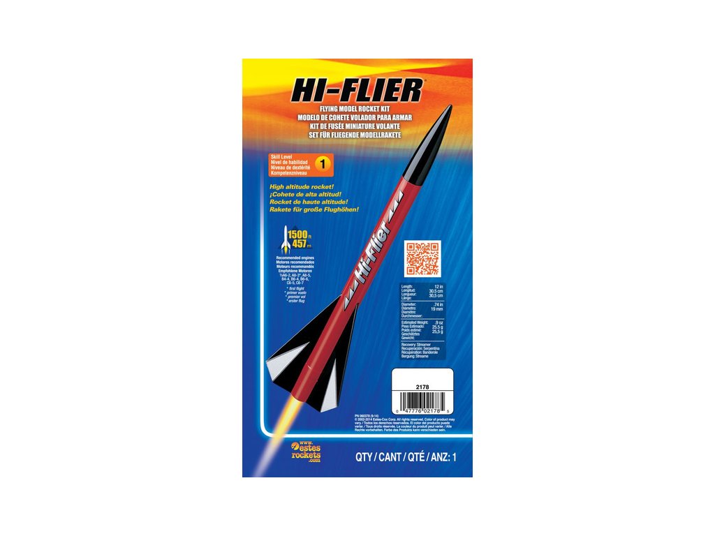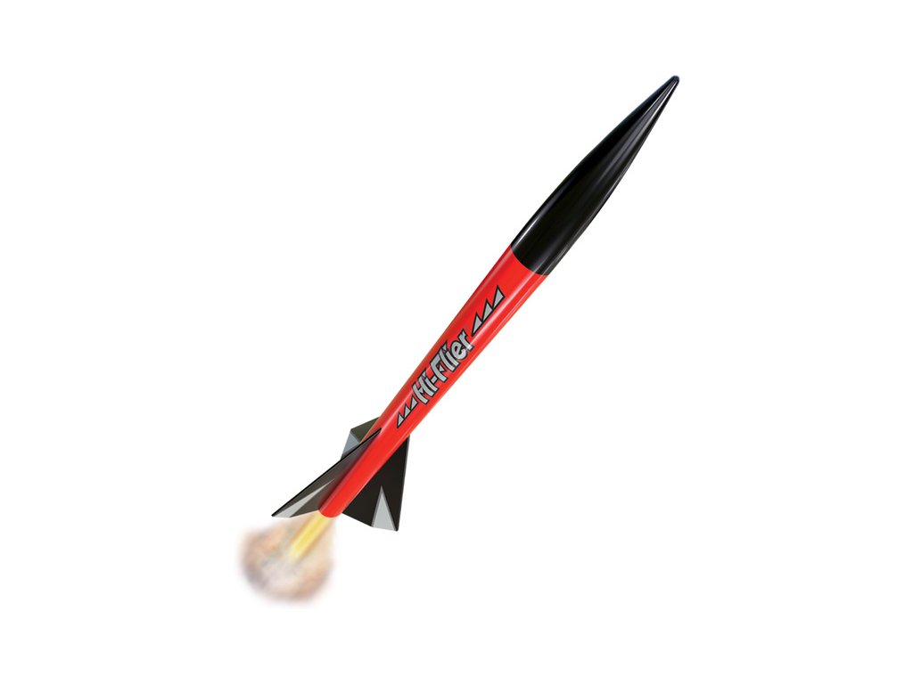 Model rakety Estes - Hi-Flier je na raketové motory řady A - C. Hi-Flier pro návrat používá stužku. Dosahuje výšky až 457 m! Díky oranžové barvě návratové stuhy je při sestupu raketa dobře viditelná.