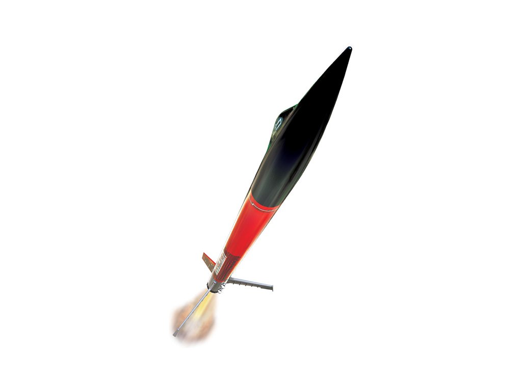Sledujte, jak tato kráska raketa stoupá k obloze. Model je navržen na rychlý let k, k tomu mu dopomáhají dlouhé zadní stabilizátory a protáhlá špice s imitací kokpitu.