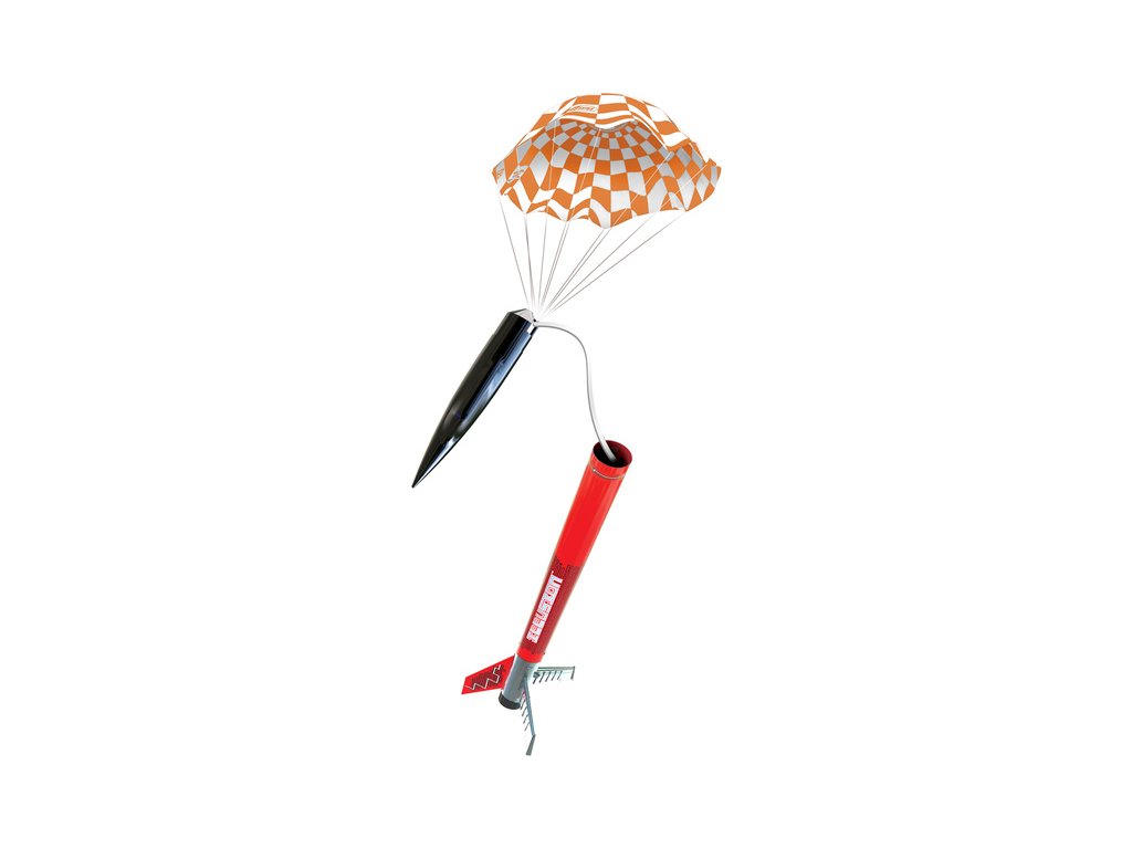 Balení obsahuje: tubus se špicí, padák, držák motoru, stabilizátory, samolepky, návod CZ, manuál EN.