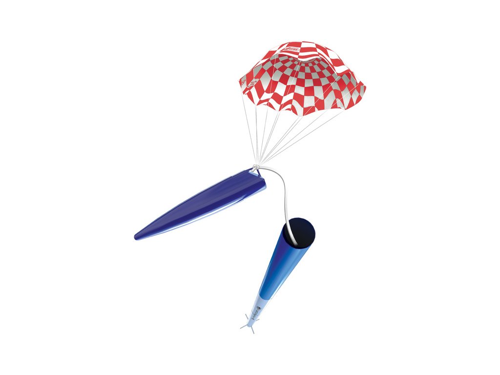 Balení obsahuje: tubusy, špici, padák, držák motoru, stabilizátory, samolepky, návod CZ, manuál EN.