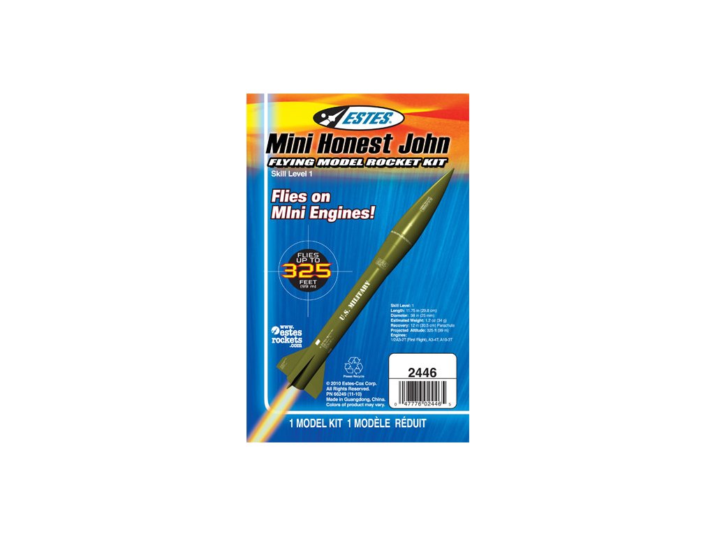 Model rakety Estes Mini Honest John je na raketové motory řady A. Mini Honest John jak již název napovídá je menší 30cm dlouhá polomaketa rakety používané v americké armádě. Model rakety Estes obsahuje velké množství maketových doplňků. Létá do výšky 100 m, k zemi se snese díky padáku.