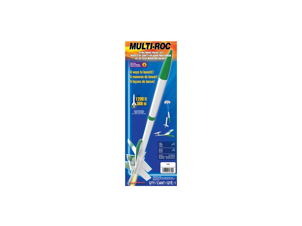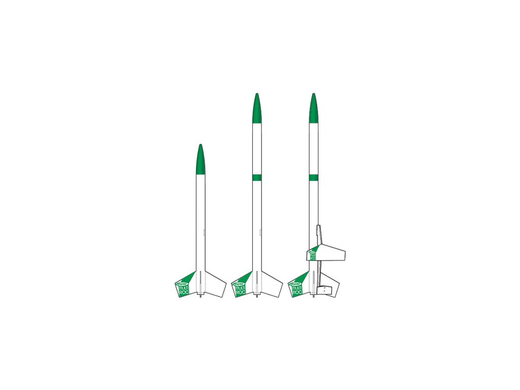 Estes Multi-Roc Kit - stavebnice modelu rakety na raketové motory řady B - D. Tato multifunkční stavebnice umožňuje sestavení rakety šesti různými způsoby - dvoustupňová raketa, třístupňová raketa, s balsovým kluzákem a další. Dosažitelná výška letu až 366 m!