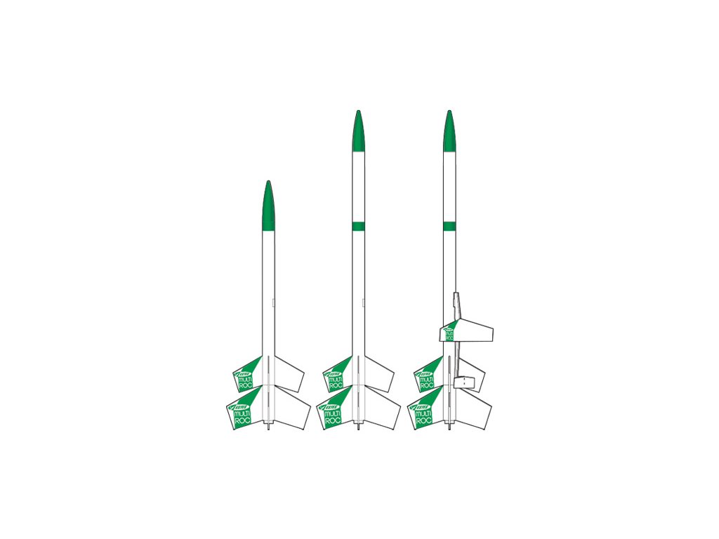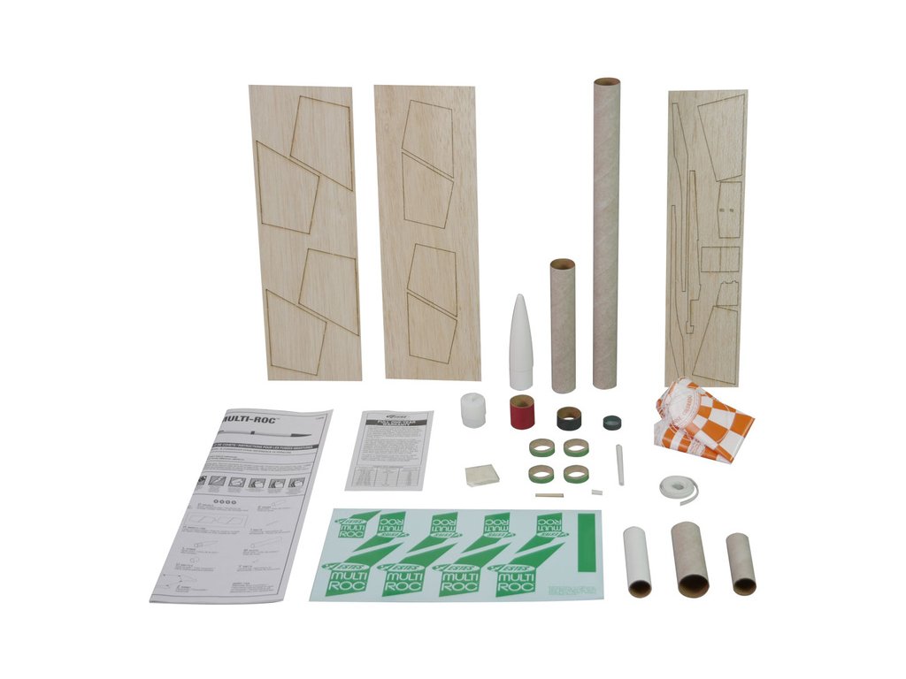 Estes Multi-Roc Kit - stavebnice modelu rakety na raketové motory. Tato multifunkční stavebnice umožňuje sestavení rakety šesti různými způsoby - dvoustupňová raketa, třístupňová raketa, s balsovým kluzákem a další. Dosažitelná výška letu až 366 m!