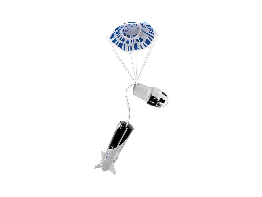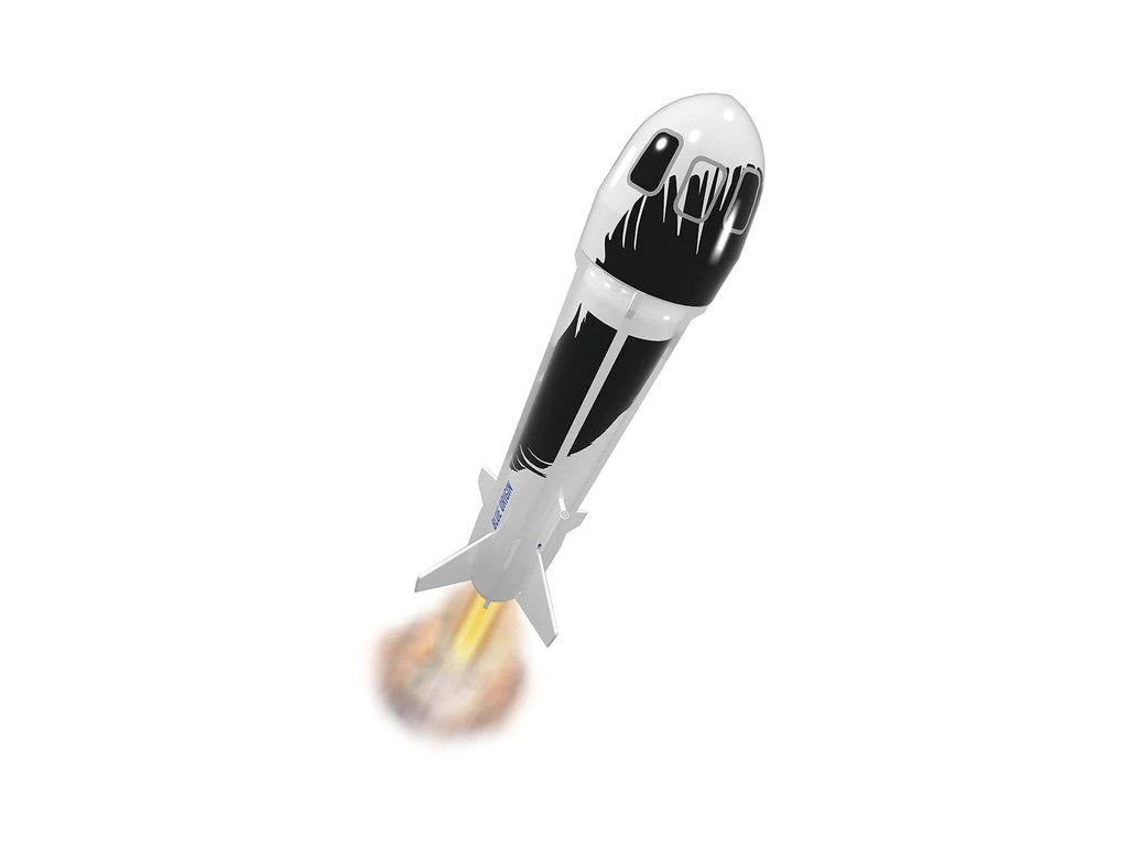 Model rakety Estes New Shepard Kit je na raketové motory řady B - C. Spolehlivá raketa pro mírně pokročilé létá do výšky 213 m, návrat 38 cm padákem.