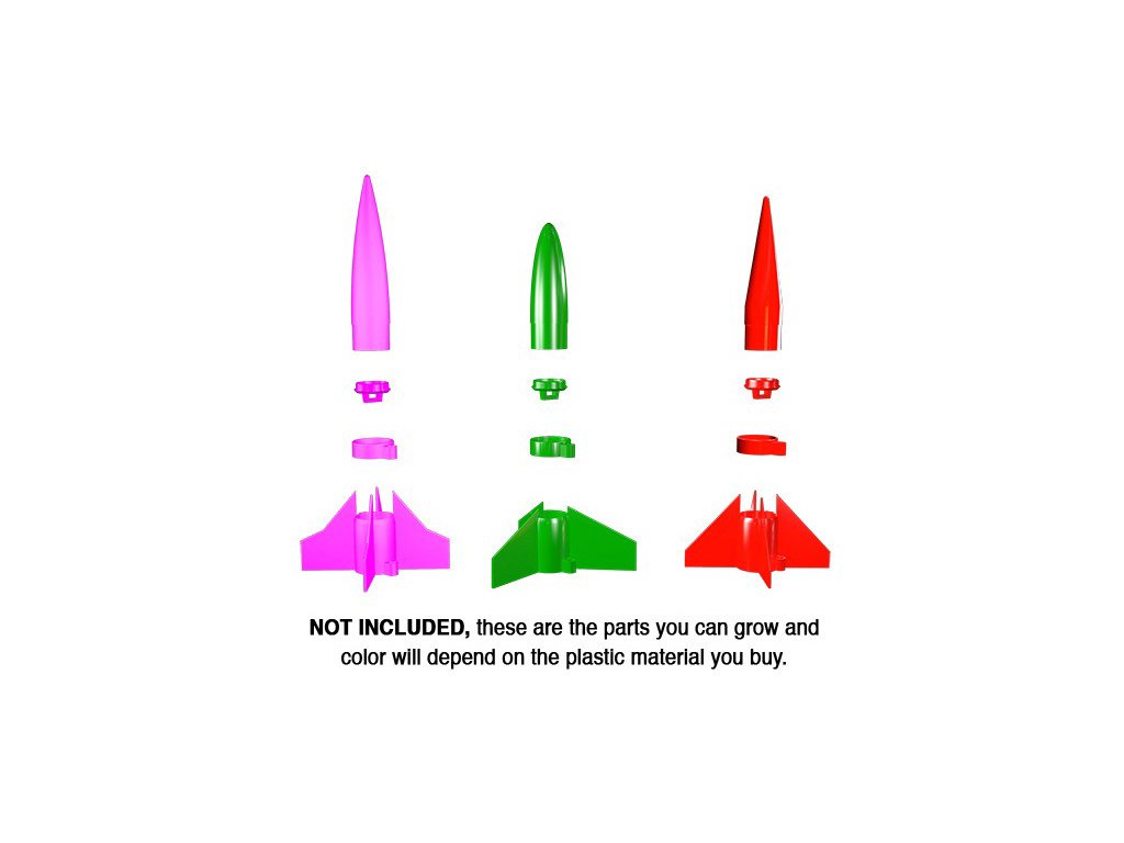 Balení obsahuje: trubky, vložky motorů, vytahováky, padáky (22.9 cm) atd., k tisku je doporučena hmota ABS.