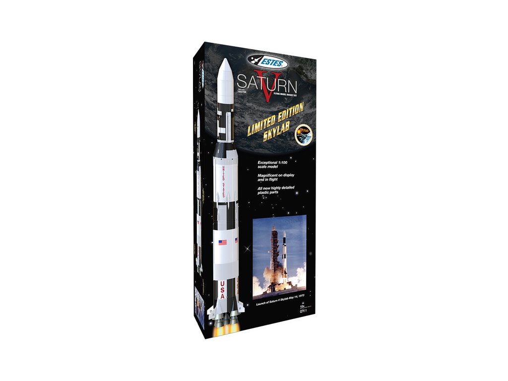 Maketová stavebnice Estes Saturn V Skylab 2 Kit. Raketa je na raketové motory řady E a F. Replika rakety Saturn V, v měřítku 1:100, s užitečným zatížením Skylab, vypuštěná v roce 1973. Efektní návrat rakety s dvěma stupni pomocí tří padáků. Dosažitelná výška 120 metrů.
