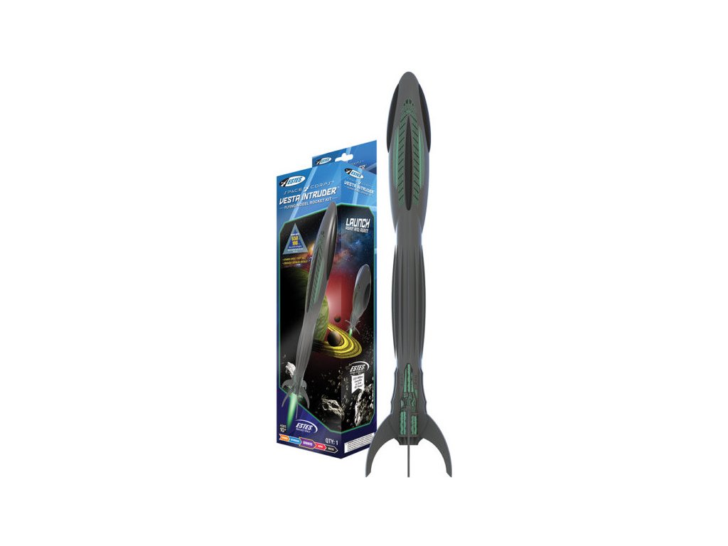 Model rakety Estes Space Corps Vesta Intruder na raketový motor řady C a D, vyletí do výšky až 198 metrů. Jedná se o sci-fi mimozemský model rakety, který je propracovaný a úžasně vypadá. Bezpečný návrat je realizován pomocí padáku.