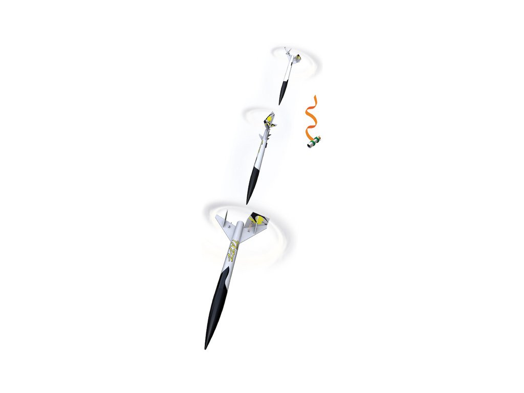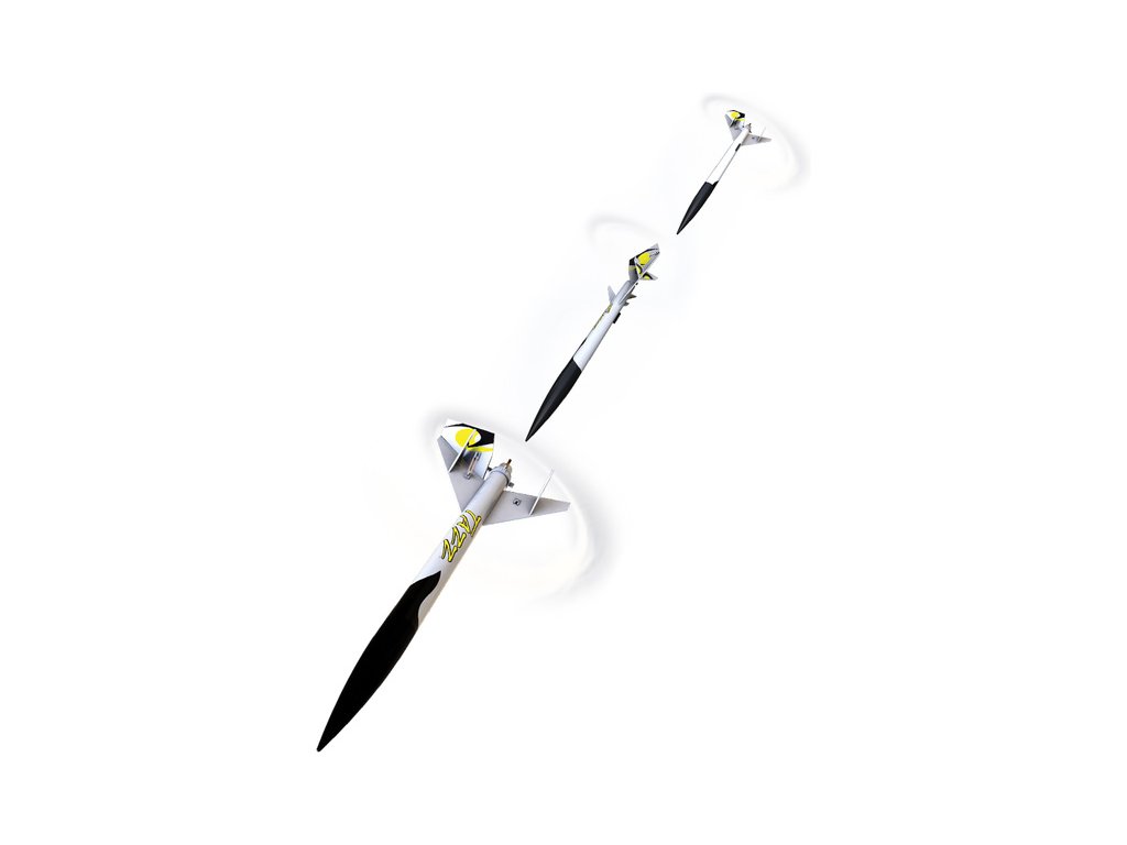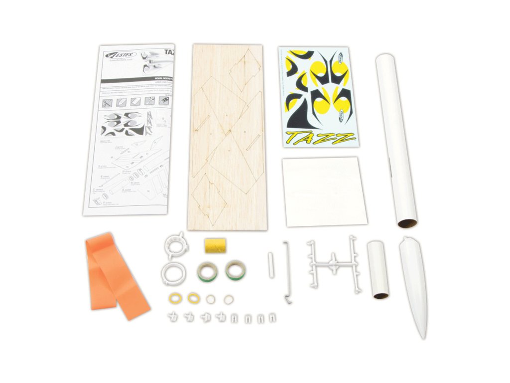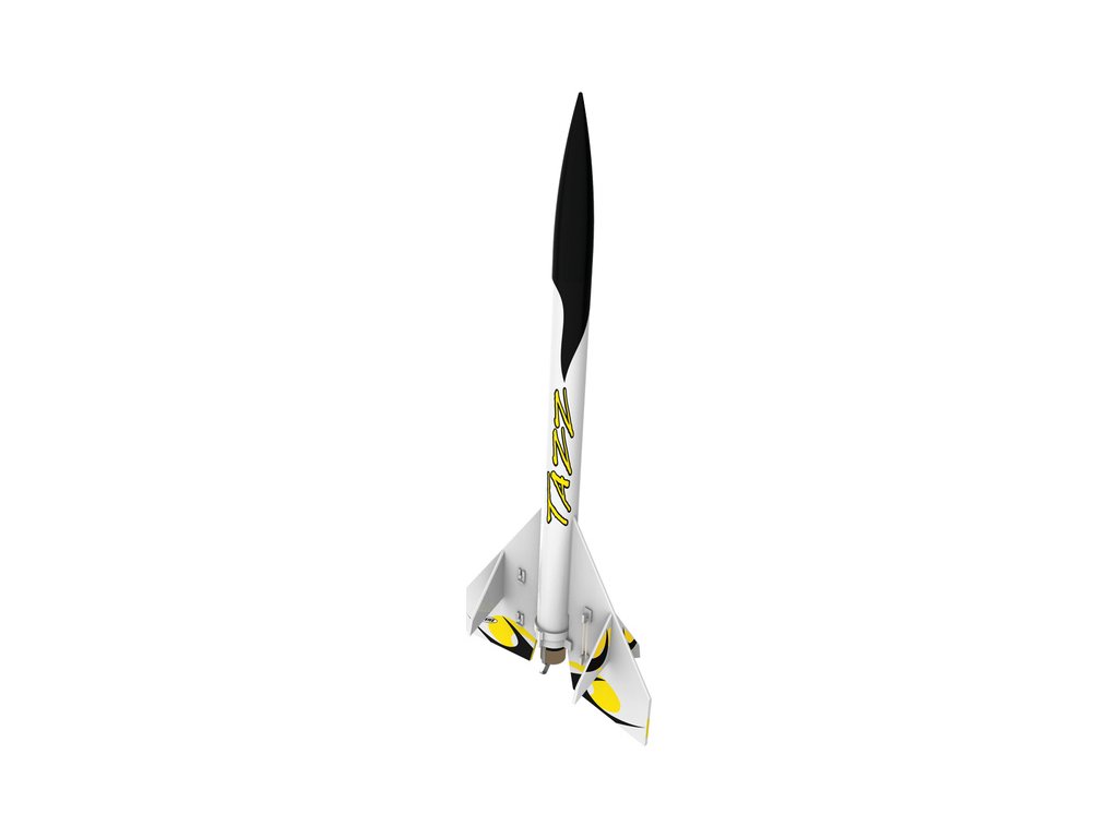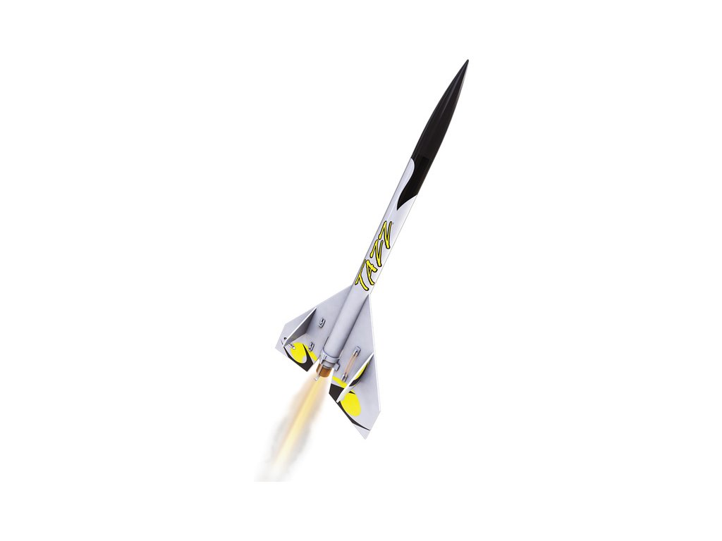 Model raketyEstes Tazz Kit, na raketové motory řady A - C. Po dosažení maximální výšky se odpojí část motoru, čímž se uvolní klapka na stabilizátoru a raketa ve vývrtce zamíří k zemi. Návrat motoru pomocí stuhy.