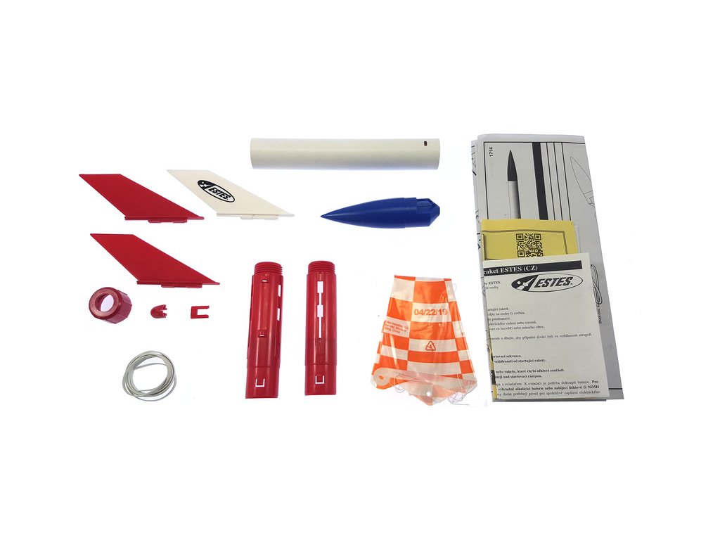 Balení obsahuje 25 sáčků s díly pro stavbu 25 raket (tubusy, špice, stabilizátory, držáky motorů, padáky). Návod CZ, manuál EN.