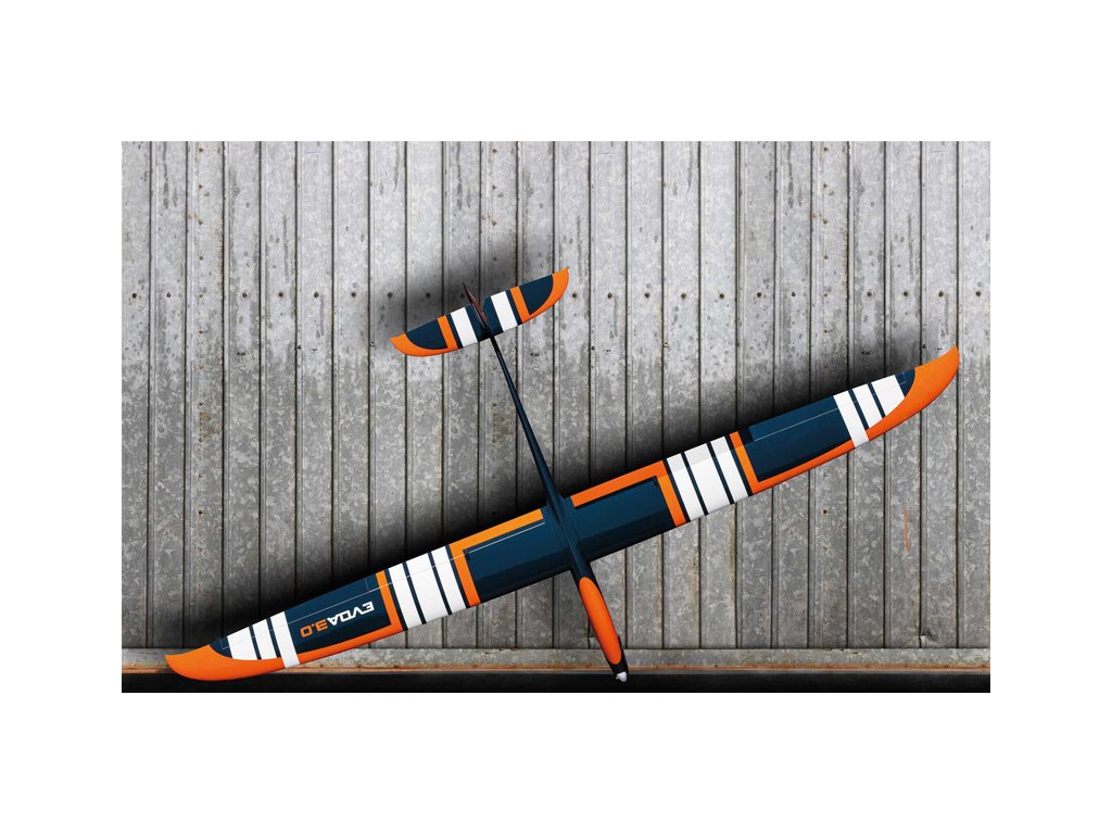 RC model motorizovaného sportovního větroně Robbe EVOA 3.0 PNP o rozpětí 3m, je vhodný pro termické i dynamické létání. Kompozitová konstrukce, dvoudílné křídlo s uhlíkovou spojkou, 4klapkové křídlo s křidélky a vztlakovými klapkami. Nainstalované jsou serva, motor, vrtule s kuželem.