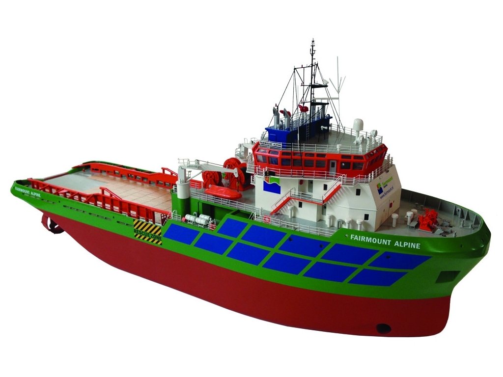 Fairmount Alpine je oceánský remorkér/záchranná loď vybavená širokou paletou speciálních zařízení pro vyzdvihování potopených lodí, přepravu lodí a jiných extrémních nákladů na částečně ponořených bárkách. Stavebnice v měřítku 1:75 je určena pro pokročilé lodní stavitele.