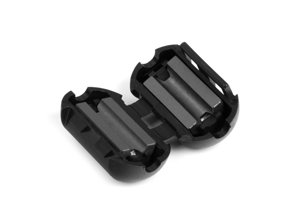 Snímatelný feritový odrušovací filtr pro signálové a tenké silové kabely do průměru 3,5 mm. Rozměry: 25,0x14,5mm