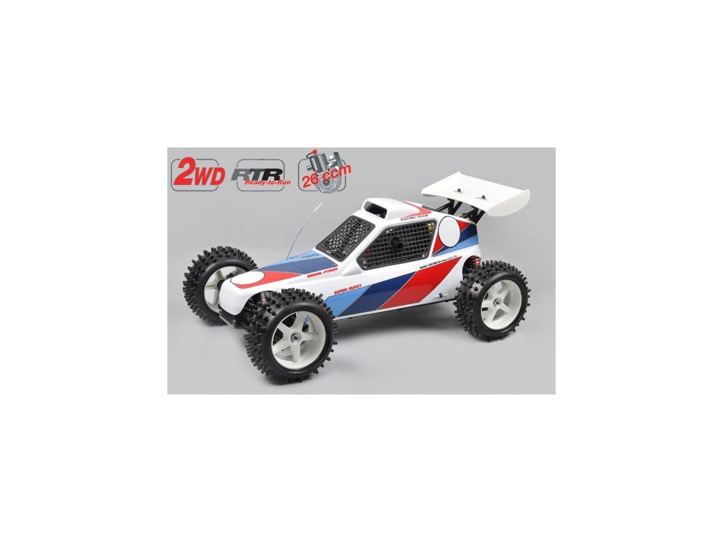 Sestavený model v 1/6 s bílou karoserií a náhonem zadní nápravy osazený spalovacím motorem ZENOAH 26ccm. Model vč. RC soupravy 2,4 GHz, připraveno k jízdě.