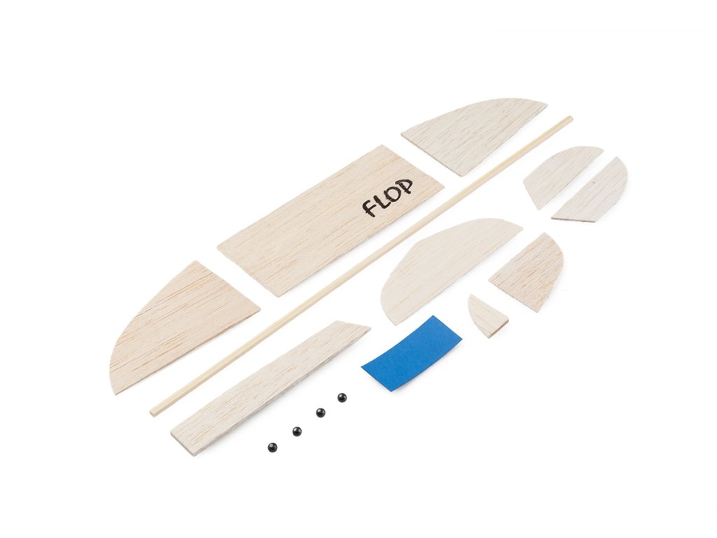 Celobalsové házedlo s velmi jednoduchou stavbou, ideální jako úplně první model, který postavíte během několika desítek minut. Díky přesným CNC vyřezávaným dílům nebudete potřebovat žádné nástroje, pouze acetonové lepidlo (Kanagom, UHU-hart apod.) a špendlíky. Vzhledem ke kapesním rozměrům si s Flopem skvěle zalétáte kdekoliv, třeba na nedělní odpolední vycházce do parku.
