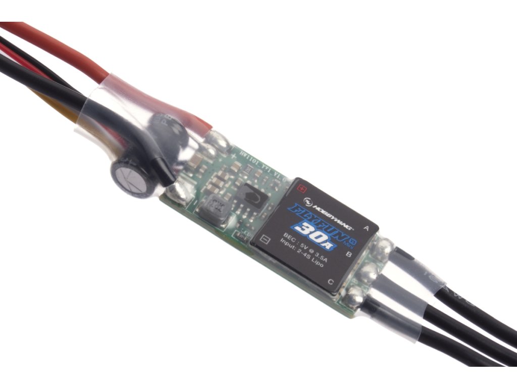 - Výkonný spínaný stabilizátor napájení BEC výstupním napětím 5,2 V a zatížitelností 3,5 A trvale a 5 A špičkově. BEC je oddělen od ostatních obvodů regulátoru, může si zachovat správnou funkci i při spálení výkonové desky s MOSFET tranzistory regulátoru.