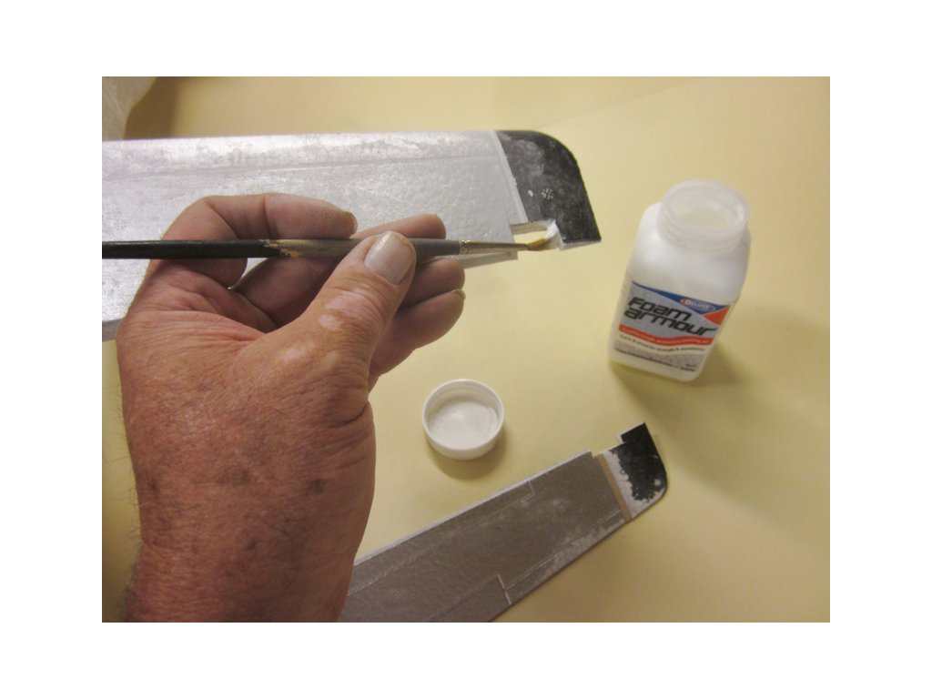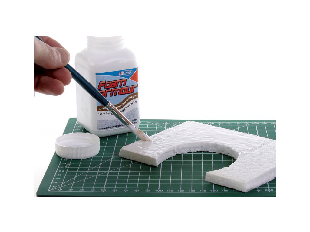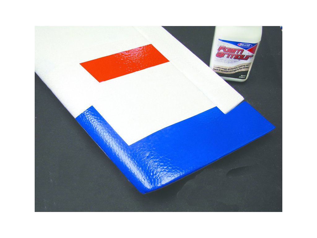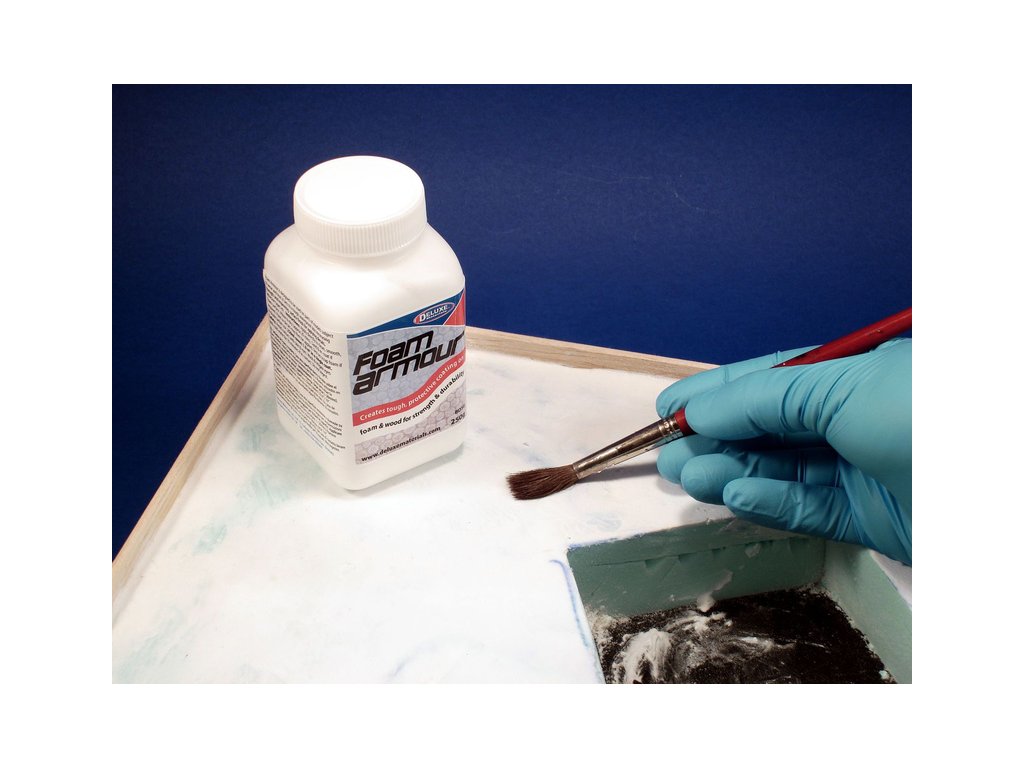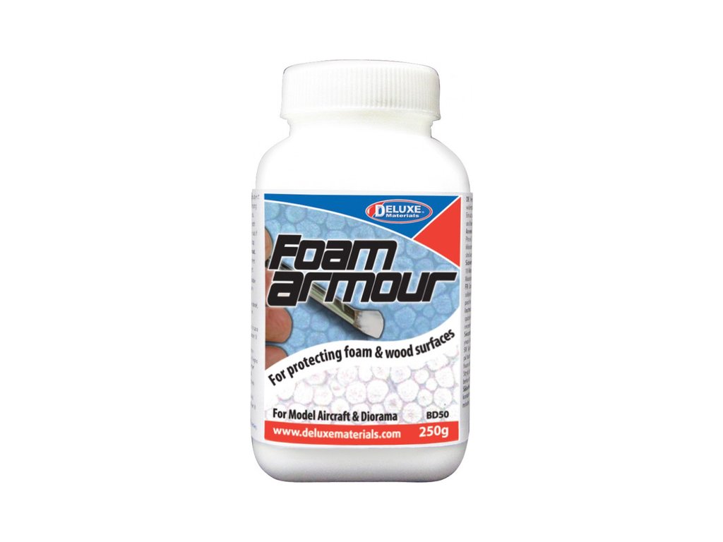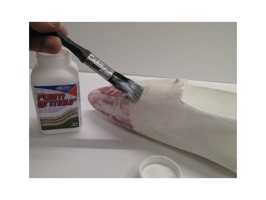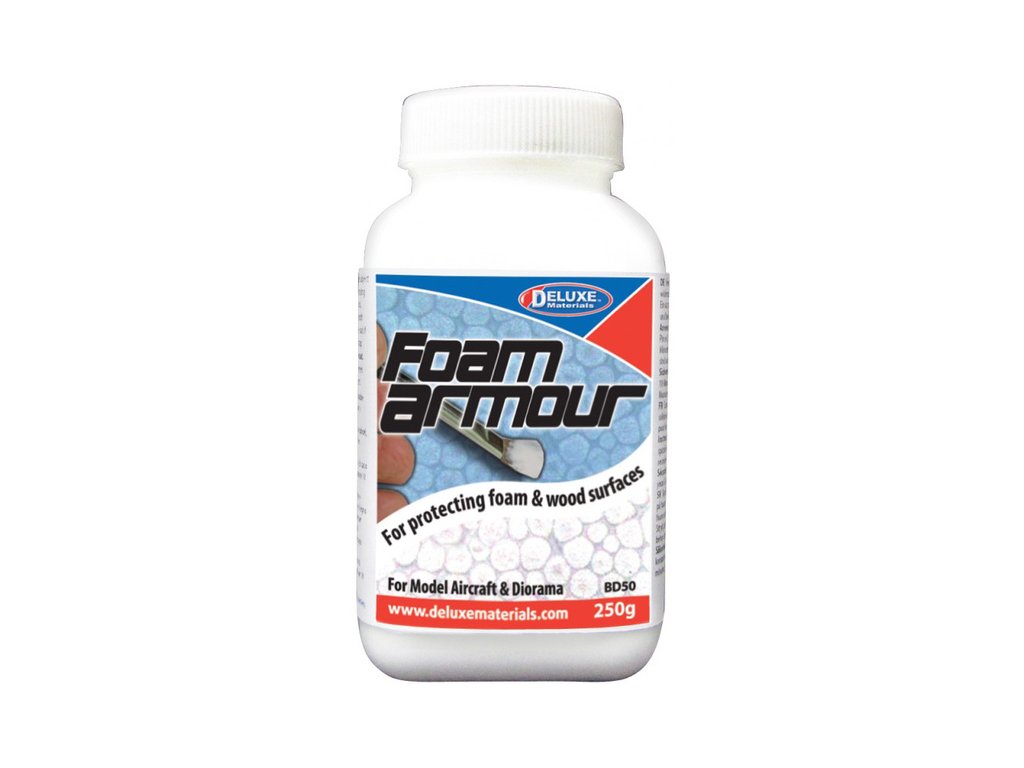 Foam Armour je akrylová pryskyřice, která je určena pro zpevnění povrchu pěnových hmot (EPP, EPS, EPO, depronu) nebo dřeva. Povrch bude odolnější vůči poškrábání. Doba tuhnutí je přibližně 2 až 6 hodin. Po vytvrzení je povrch vodovzdorný a snadno brousitelný. Výtěžnost cca 1 m². Přípravek se neředí, aplikuje se v dodané konzistenci a rozetře se štětcem do tenké vrstvy. Jde vodou ředitelný materiál, štětec po práci opláchněte vodou.