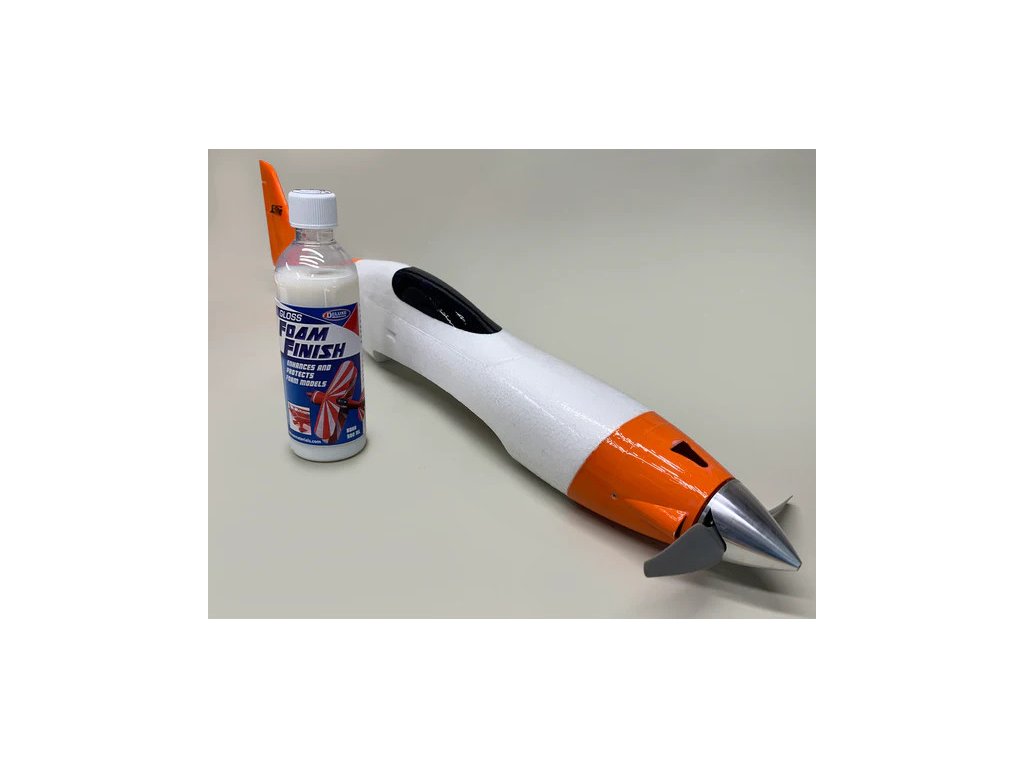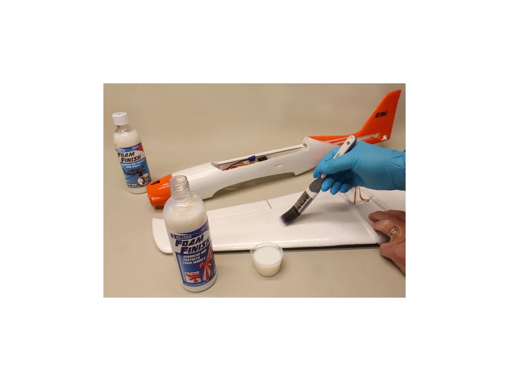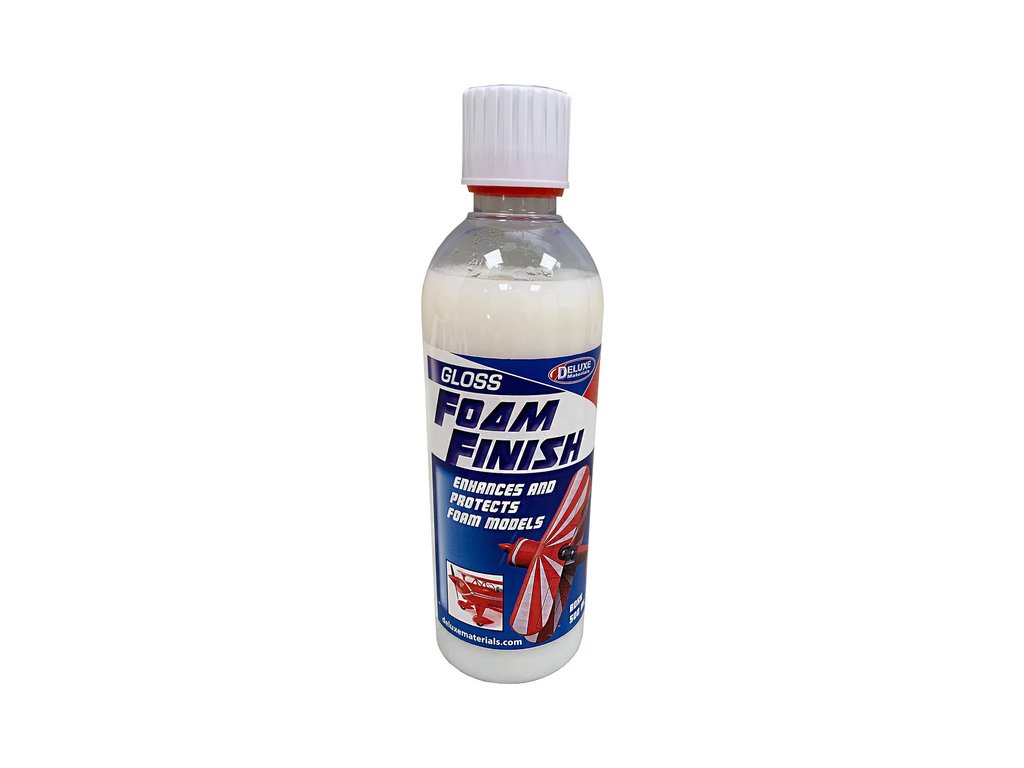 Foam Finish lesklý - je pryskyřice pro zpevnění, ochranu a vylepšení vzhledu pěnový hmot a pěnový modelů (EPP, EPS, EPO). Slouží jako finální vrstva, která je pevná odolná vůči škrábancům, ale polo-pružná. Pryskyřice je přilnavá a snadno brousitelná. Lze použít se skelnou tkaninou pro ještě tvrdší povrch. Zpevní a zafixuje detaily, obtisky, většinu barev a po zaschnutí je lze přelakovat. Pryskyřice nevyžaduje míchání má malý nebo žádný zápach a udrží vaše modely déle jako nové.