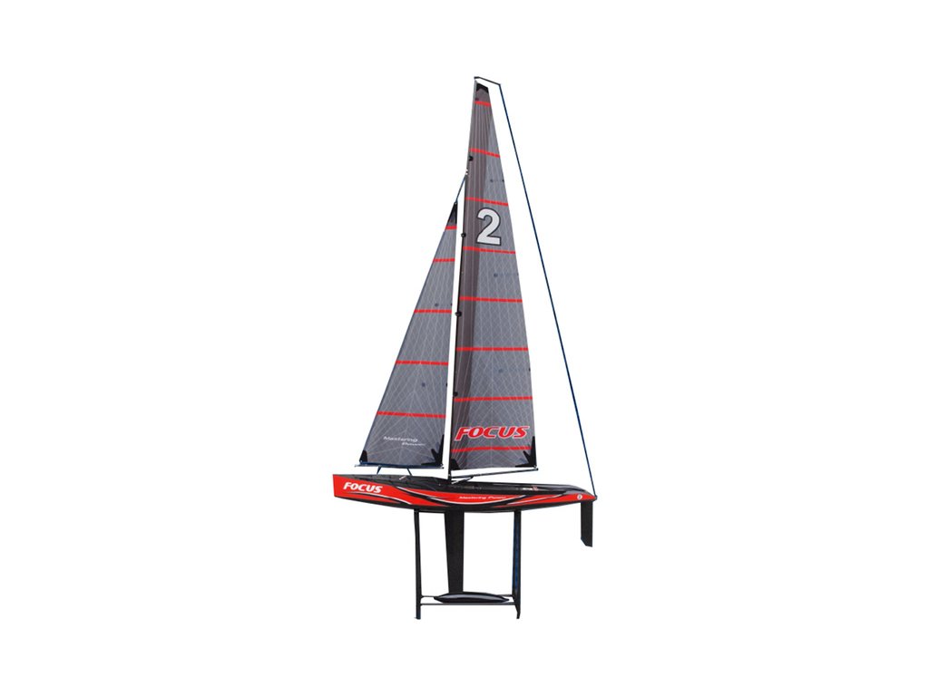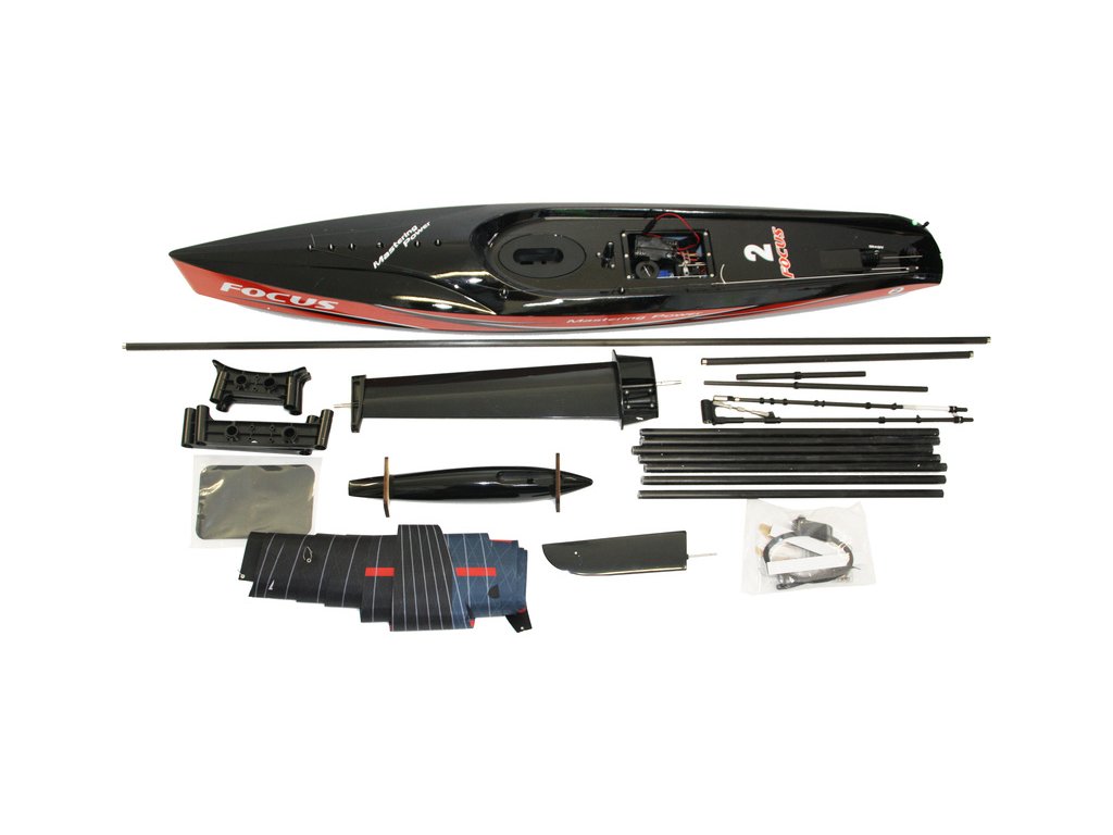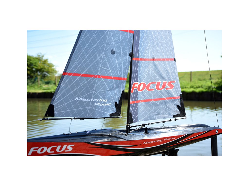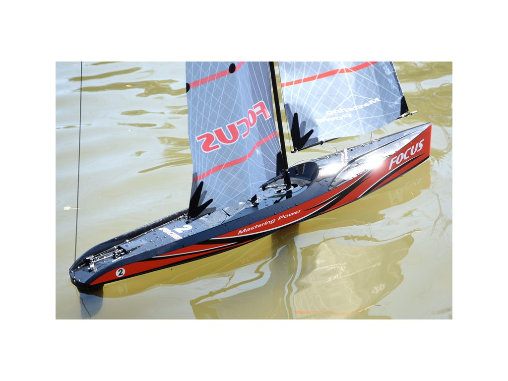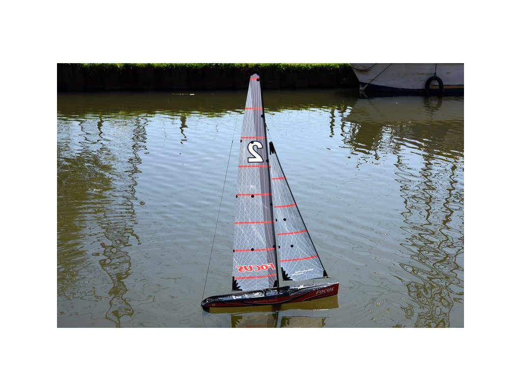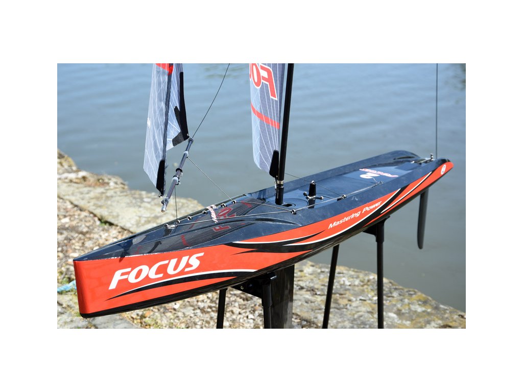 Model Focus V2 má odolný a lehký plastový ABS nabarvený trup, uhlíkové díly stěžně, nainstalováno je servo řízení s kovovým převodem, 10kg servo navijáku s kovovým převodem, stačí doplnit přijímač s bateriemi. Loď třídy 1m je navržena pro všechny, kteří mají zájem vyzkoušet si závodní atmosféru a načerpat zkušenosti pro výkonné plachtění.