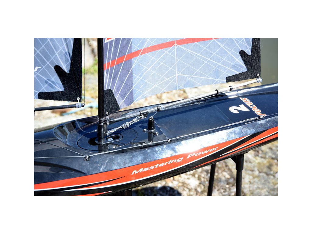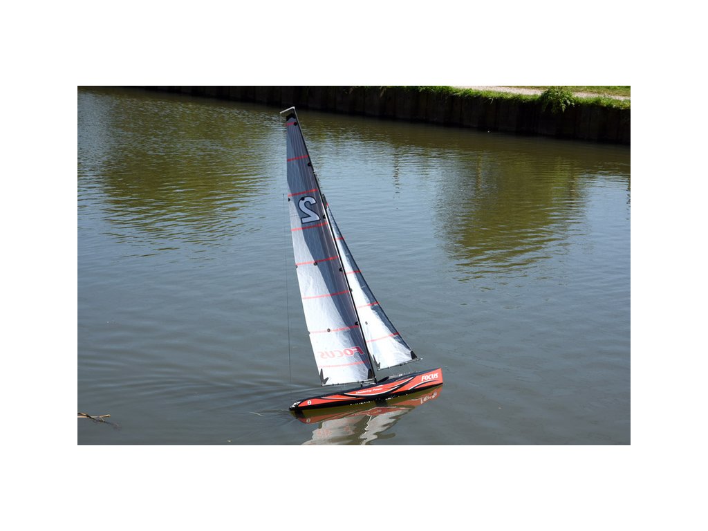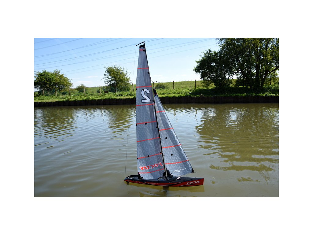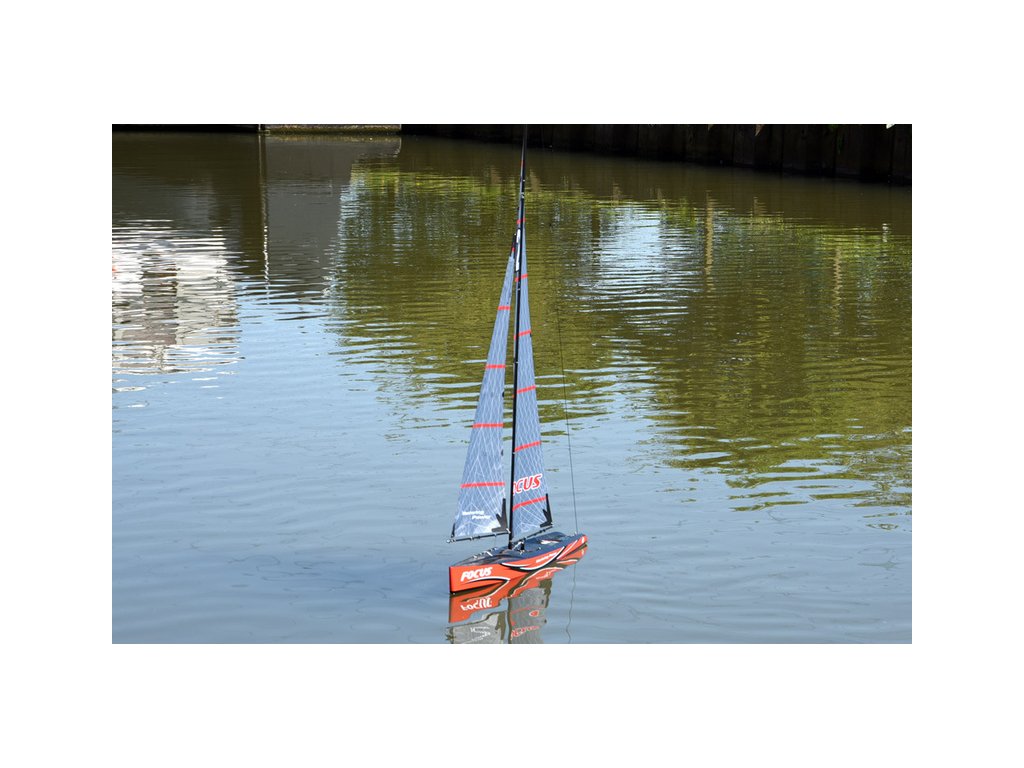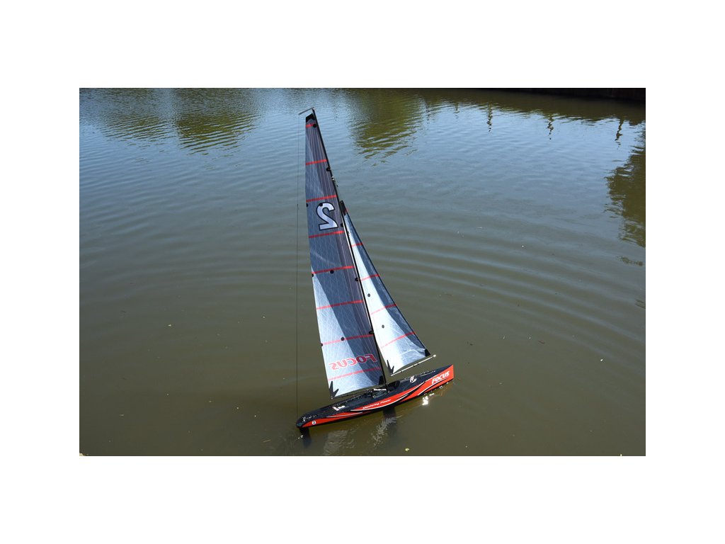 Model Focus V2 má odolný a lehký plastový ABS nabarvený trup, uhlíkové díly stěžně, nainstalováno je servo řízení s kovovým převodem, 10kg servo navijáku s kovovým převodem, stačí doplnit přijímač s bateriemi. Loď třídy 1m je navržena pro všechny, kteří mají zájem vyzkoušet si závodní atmosféru a načerpat zkušenosti pro výkonné plachtění.