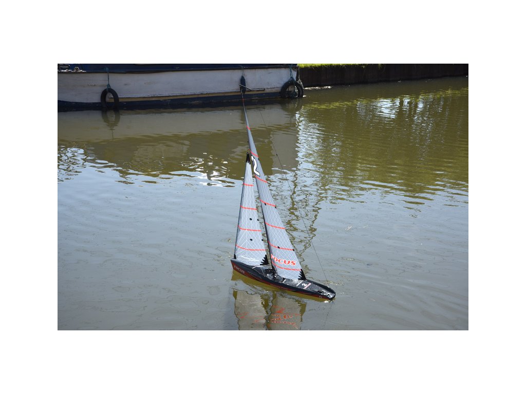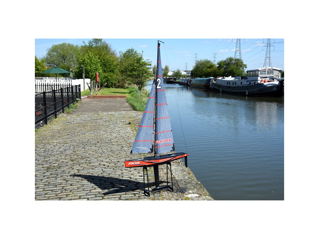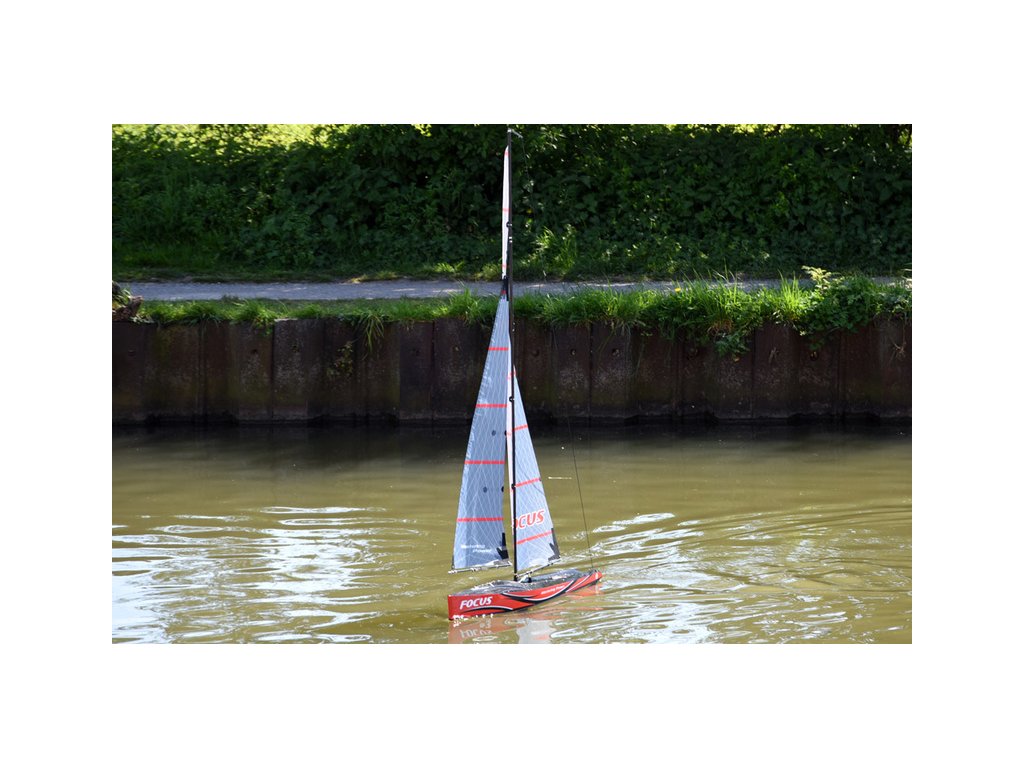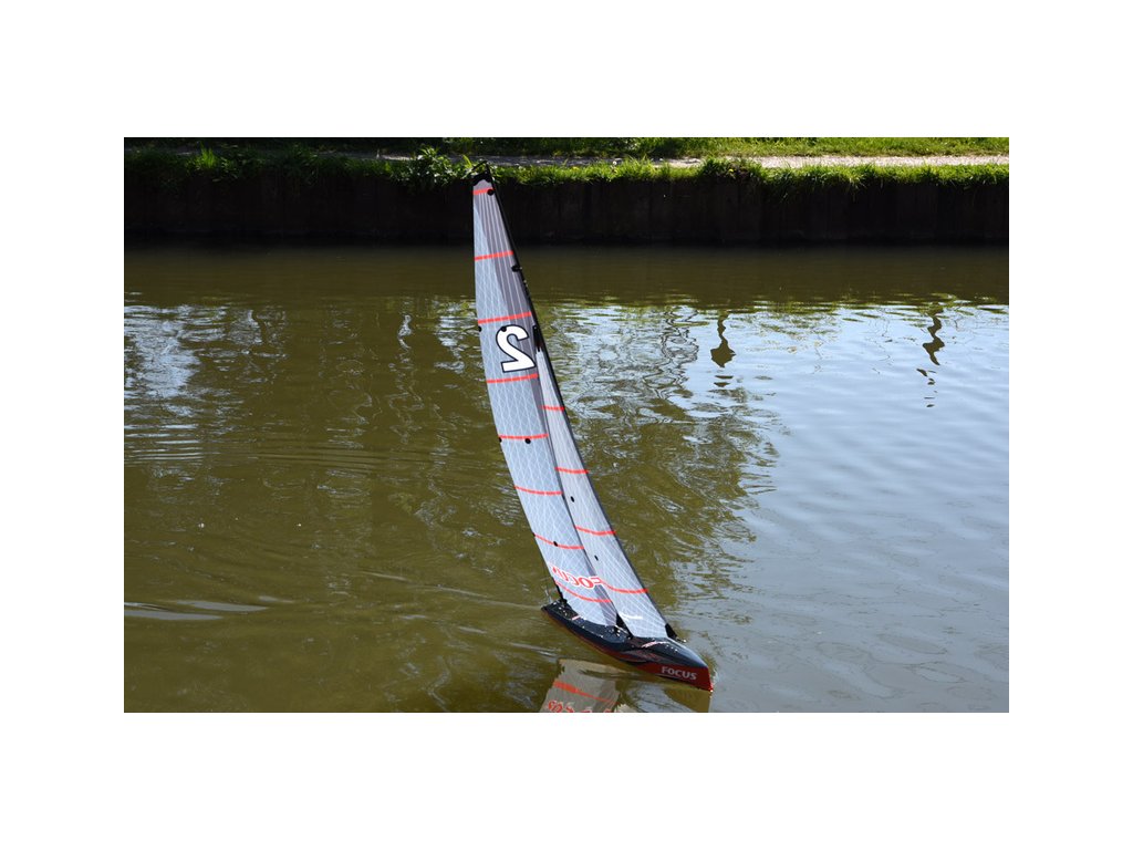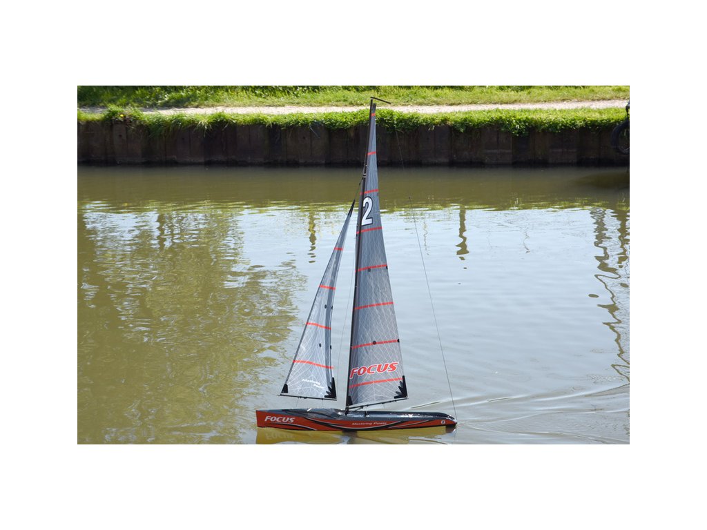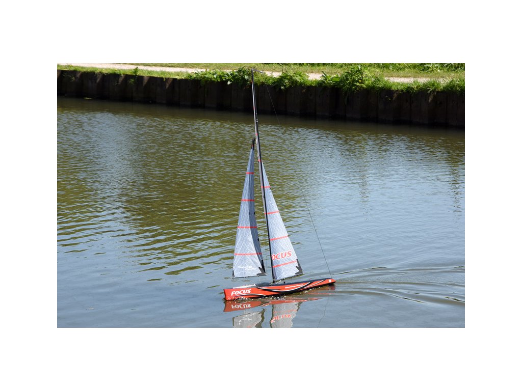 Model Focus V2 má odolný a lehký plastový ABS nabarvený trup, uhlíkové díly stěžně, nainstalováno je servo řízení s kovovým převodem, 10kg servo navijáku s kovovým převodem, stačí doplnit přijímač s bateriemi. Loď třídy 1m je navržena pro všechny, kteří mají zájem vyzkoušet si závodní atmosféru a načerpat zkušenosti pro výkonné plachtění.