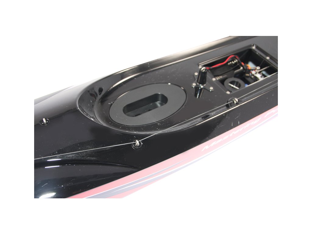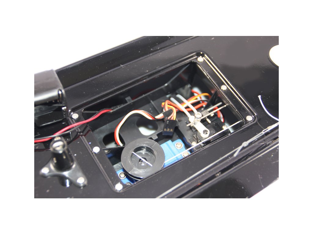 V trupu lodi jsou nainstalovány 9kg servo navijáku a digitální servo řízení. Táhlo serva řízení a kladka navijáku s lanovody jsou připojeny a připraveny k finální montáži.