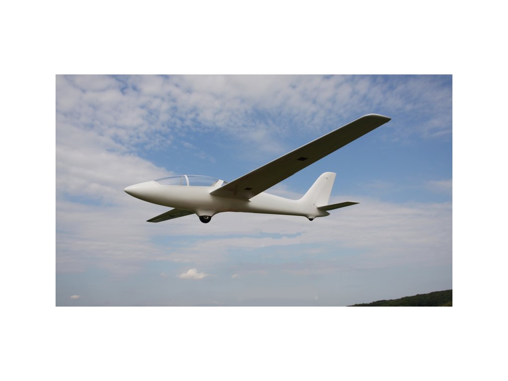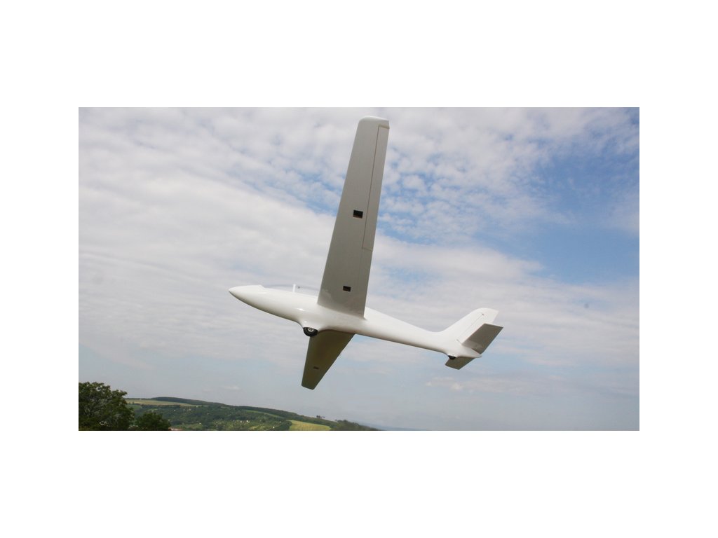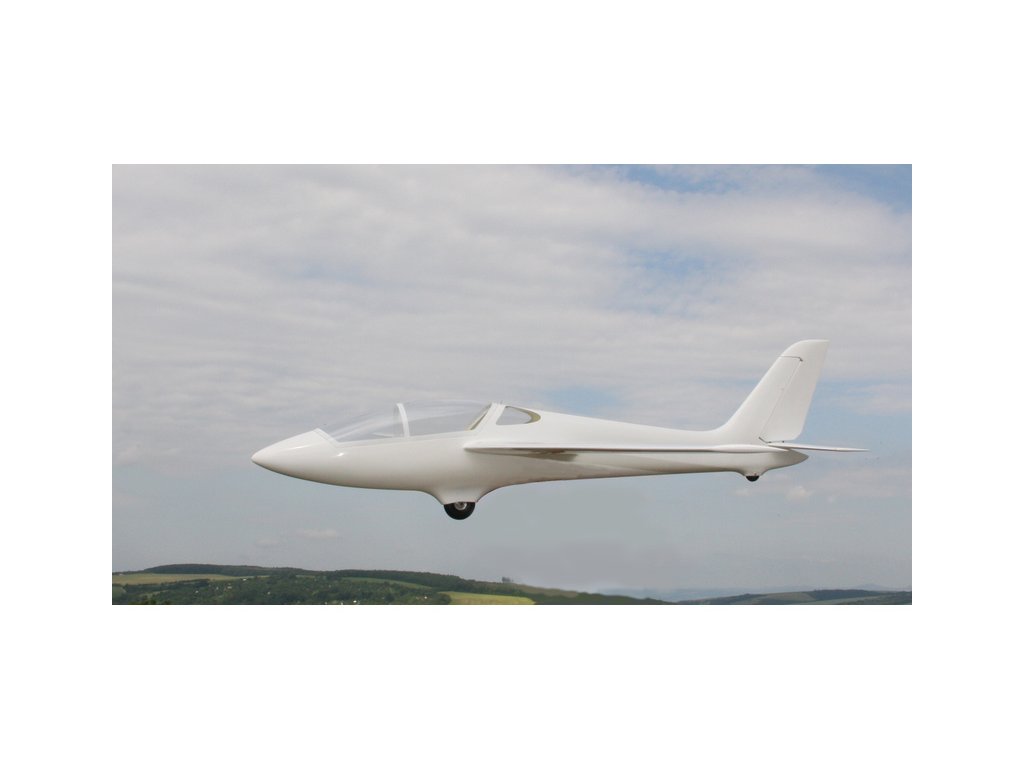 Populární polský akrobatický kluzák MDM-1 FOX v měřítku 1:4 o rozpětí 3,5m od Robbe jako kompozitový model s bílým zbarvením s laminátovým trupem a sendvičovým vakuovaným křídlem do forem. Křídlo má vysokou pevnost díky uhlíkovým výztuhám konstrukce.