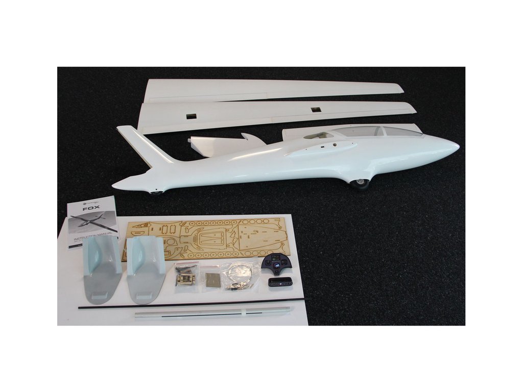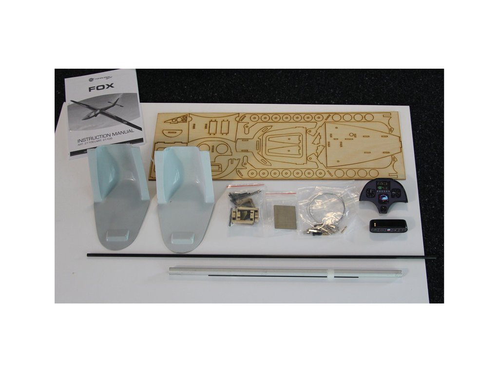 Fox obsahuje kompletní příslušenství a součásti potřebné pro dokončení, jako jsou spojky, vidličky a kuličkové čepy, páky kormidel, spojky, šrouby, kola atd. Tato verze stavebice FOX je v bílé barvě.
