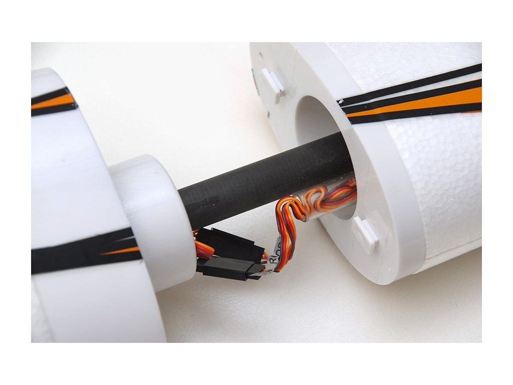 K ovládání modelu budete potřebovat přinejmenším šestikanálovou RC soupravu - v tom případě se obě serva křidélek i klapek zapojují pomocí Y-kabelů (jsou součástí stavebnice) do jednoho kanálu. Při zapojování přijímače se řiďte návodem k obsluze vaší RC soupravy. Ideální je, pokud máte aspoň sedmikanálovou počítačovou RC soupravu, která umožňuje nezávislé ovládání serv křidélek a klapek (vyžaduje připojení jednotlivých kabelů pro serva k multikonektorům mezi polovinami křídla a trupem). V tom případě můžete nastavit diferenciaci výchylek křidélek; pro začátek doporučujeme 50% - tj. výchylka křidélka dolů je poloviční ve srovnání s výchylkou nahoru. Hlavně pro snadnější přistání na svahu je výhodné křidélka mixovat jako aerodynamické brzdy (vyklápějte je nahoru).
