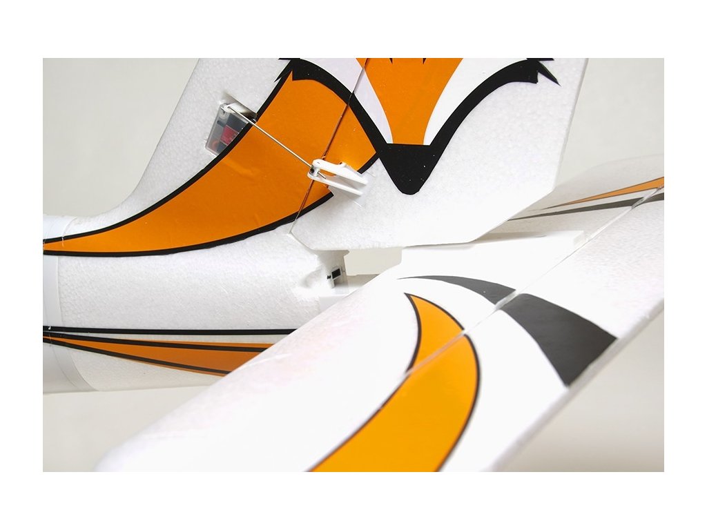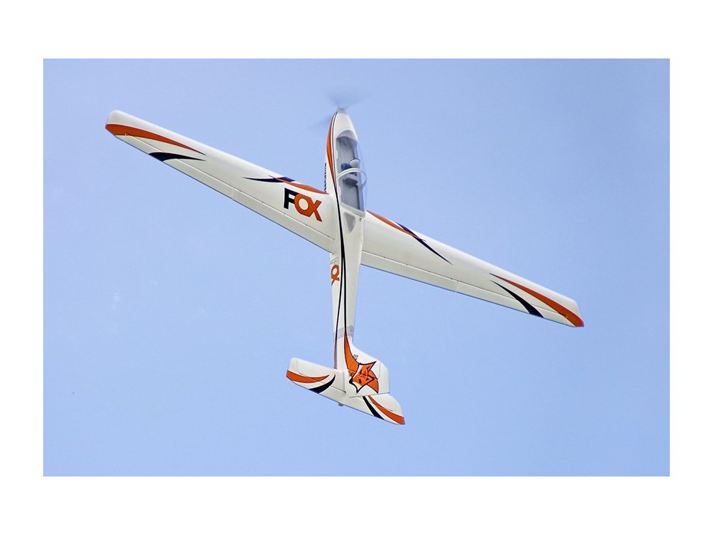 Trup modelu z pěnového EPO je dodáván s namontovaným střídavým motorem s rotačním pláštěm (C4258-KV460), sklopnou vrtulí 15x7,5“, s osazeným 70A střídavým regulátorem a servy směrovky a výškovky. Ve přední části trupu pod rozměrným odnímatelným krytem kabiny se nachází prostor pro akumulátory a palubní elektroniku. Pro FOXe budete potřebovat Li-poly šestičlánky 5000 mAh se zatížitelností 35C. Směrovka je ovládána servem uloženým v kýlovce; výškovka servem uloženým ve vodorovném stabilizátoru. Celá ocasní část trupu je pro snadnou přepravu a skladování odnímatelná - upevňuje se k přední části trupu pomocí trubkové spojky a bajonetové západky. Křídlo rovněž z pěnového EPO je dvoudílné, nasouvané z boku na trubkovou uhlíkovou spojku. Křidélka a klapky jsou ovládány vždy dvěma servy uloženými v křídle. Přistávací zařízení tvoří jednostopý podvozek s napůl zapuštěným hlavním kolem a malým ostruhovým kolečkem. Ovládána jsou křidélka, klapky, směrovka, výškovka a otáčky motoru.