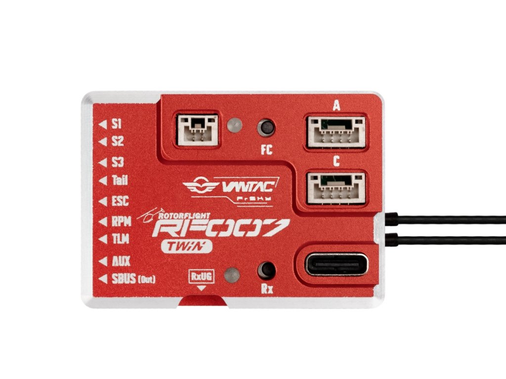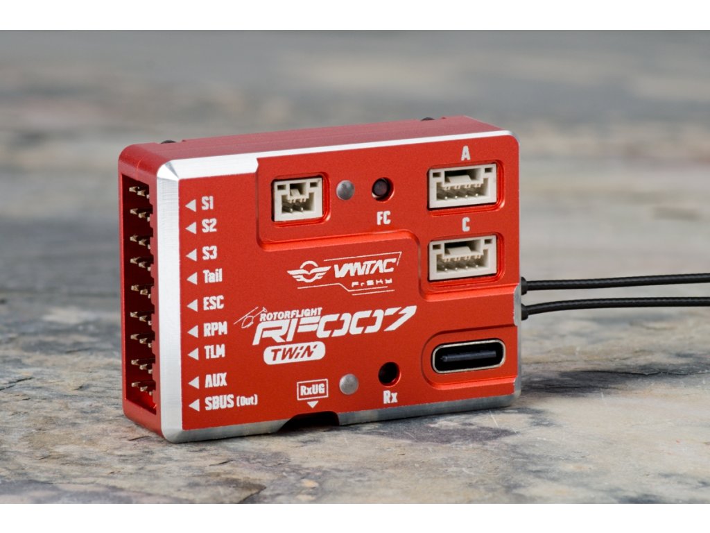 FrSky VANTAC RF007 je špičková letová flybarless (FBL) jednotka, která využívá nejnovější technologii Rotorflight 2.X. Díky vestavěnému přijímači Twin 2,4GHz R6 poskytuje RF007 rozsáhlou škálu funkcí a zároveň umožňuje intuitivní konfiguraci, bezproblémové nastavení a ladění v reálném čase prostřednictvím rádiového rozhraní ETHOS.