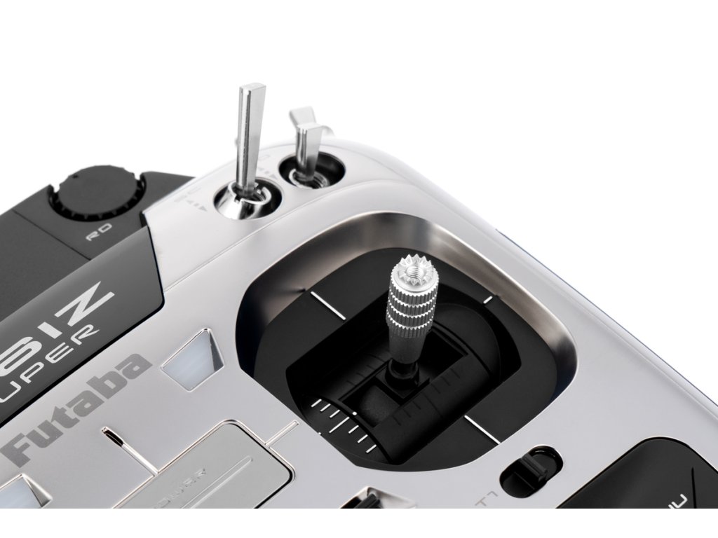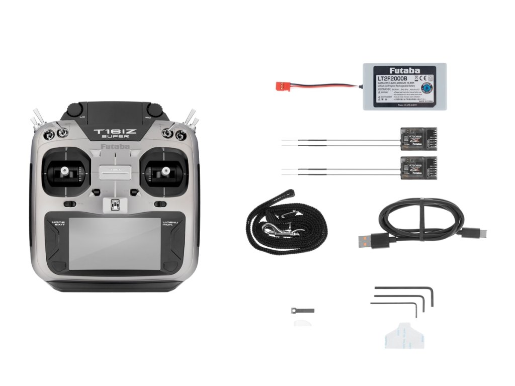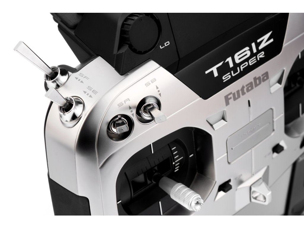 Vysílač T16IZ SUPER ve skříňce dokonale padnoucí do ruky je vybaven přesnými křížovými ovladači s nastavitelnou aretací/neutralizací, 8 přepínači, 2 posuvnými ovladači, 4 digitálními trimy a 2 otočnými proporcionálními ovladači. K programování slouží dvojice tlačítek a velký podsvícený barevný dotykový LCD displej zajišťující snadnou orientaci v intuitivním menu. T16IZ SUPER má paměť pro 30 modelů neomezeně rozšiřitelnou pomocí mikroSD karty a širokou škálu pokročilých mixových funkcí pro akrobatická letadla, větroně, vrtulníky a multikoptéry. Kromě zobrazení telemetrických dat na displeji je k dispozici hlasový výstup telemetrie v zásuvce pro sluchátko (není součástí soupravy). T16IZ SUPER je rovněž vybaven zásuvkou učitel-žák a zásuvkou pro programování a nastavování S.BUS serv a gyroskopických systémů CGY755/CGY760R nebo GYA553. USB datová zásuvka na horní straně vysílače možňuje používat T16IZ SUPER po připojení k PC USB kabelem jako ovladač pro RC simulátor bez potřeby dodatečného USB rozhraní.