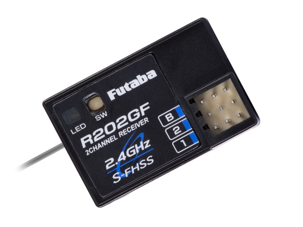 Dvoukanálový přijímač Futaba přenosového systému S-FHSS/FHSS 2.4GHz bez telemetrie pro RC auta a lodě. Je určen pro všeobecné použití v menších modelech všech kategorií. Provozní stavy přijímače jsou signalizovány LED indikátorem.