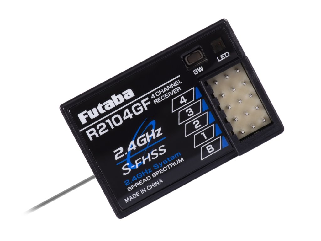 Čtyřkanálový přijímač Futaba přenosového systému S-FHSS/FHSS 2.4GHz bez telemetrie pro RC auta a lodě. Je určen pro všeobecné použití v modelech všech kategorií. Provozní stavy přijímače jsou signalizovány LED indikátorem.