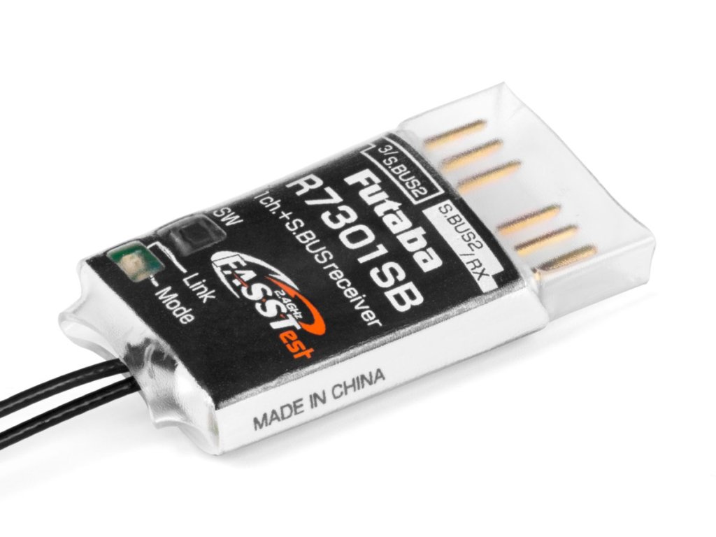 Malý a velmi lehký telemetrický přijímač Futaba přenosového systému FASSTest 2.4GHz s dvojicí diverzitních antén s plným dosahem. Je určen pro předevšímpoužití v dronech a jiných modelech používající řídící jednotky komnikující po sběrnicích S.BUS nebo S.BUS2.; díky kompaktním rozměrům a velmi nízké hmotnosti je vhodný i pro malé modely letadel s S.BUS/S.BUS2 servy a výborně se hodí jako záložní přijímač v dvoupřijímačovém provozu s jinými FASSTest přijímači. Volitelné kanálové režimy R7301SB umožňují jedné zásuvce fungovat jako klasický PWM kanálový výstup (kanál 3)/S.BUS2 nebo S.BUS port; druhá zásuvka má funkci S.BUS2 portu nebo slouží pro připojení druhého přijímače v dvoupřijímačovém provozu. S.BUS2 port pro obousměrnou komunikaci umožňuje připojení S.BUS2 serv, telemetrických čidel a dalších kompatibilních zařízení. Provozní stavy přijímače jsou signalizovány LED indikátorem.
