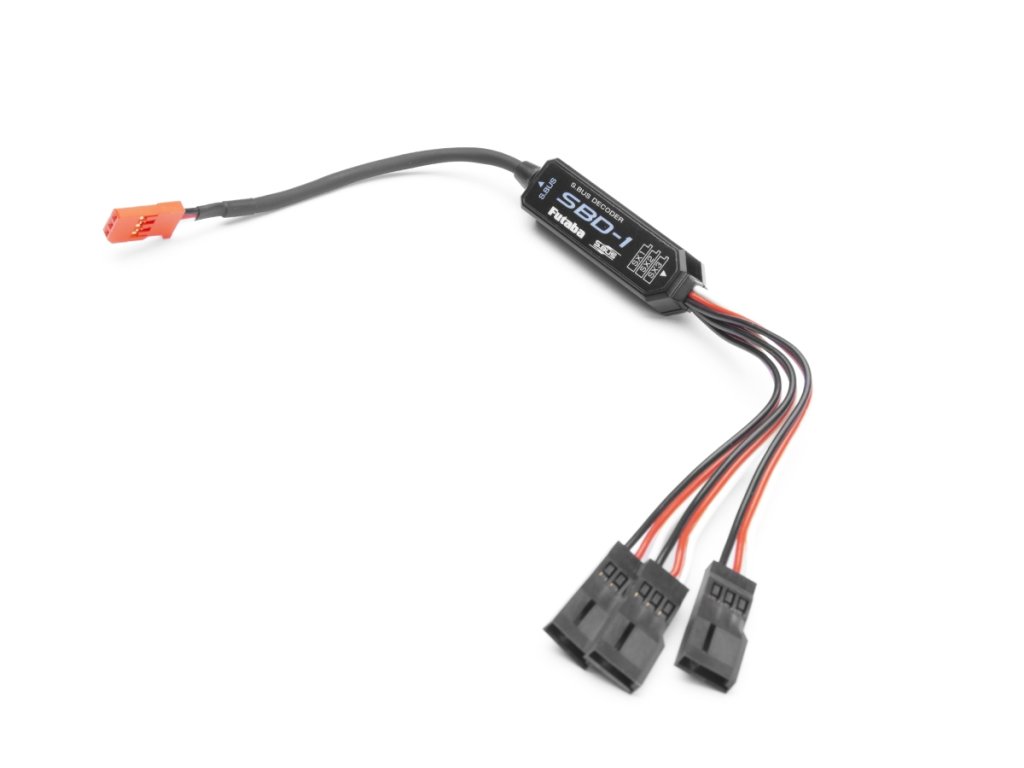 Kabelový dekodér S-BUS umožňující připojení až tří klasických serv k sériové sběrnici S-BUS, vhodný pro analogová i digitální serva se standardním napájením 4,8-6,0 V (4-5čl. NiMH). Nelze použít pro sběrnici S-BUS2.