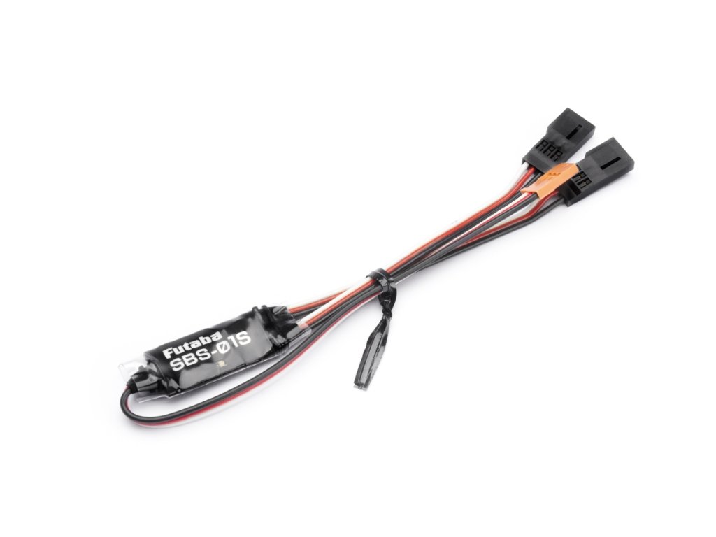 Typická instalace: mezi přijímač (S.BUS2 port) a servo 1 a 2; je-li vyžadováno současné měření více serv, můžete použít více senzorů SBS-01S (max. 4, pokud nejsou zapojeny žádné jiné senzory).