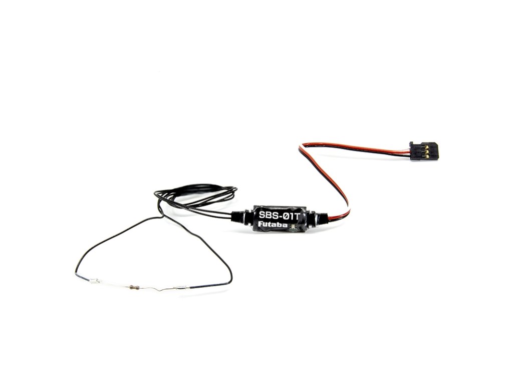 Telemetrický teplotní senzor pro RC soupravy Futaba s telemetrickými přenosovými systémy FASSTest, T-FHSS Air (pro letadla) a T-FHSS Surface (pro auta). Umožňuje měření teploty v rozsahu -20 až +200°C. Ideální pro měření teploty hlav spalovacích motorů a podobné „vysokoteplotní" aplikace. Provozní stavy senzoru signalizuje LED dioda.
