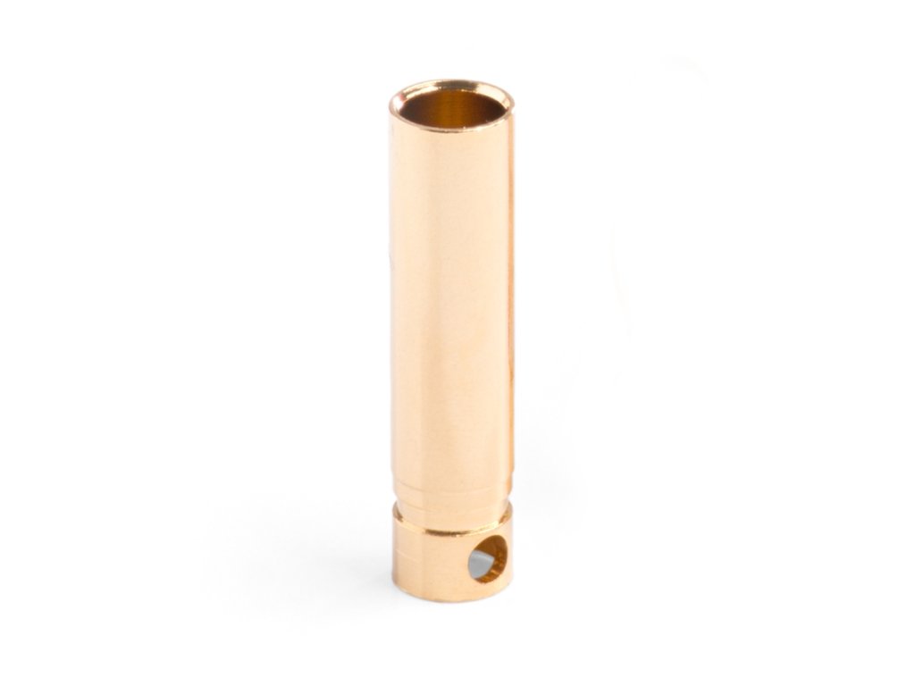 Silový zlacený konektor 4 mm s pružinovým kolíčkem se zatížitelností max. 70A (dlouhodobě 32A). Pro kabely o průřezu max. 2,6 mm2 (13AWG). Přechodový odpor 0,45 mOhm, max. 500 V. Balení 10 kusů Samic / Dutinek.