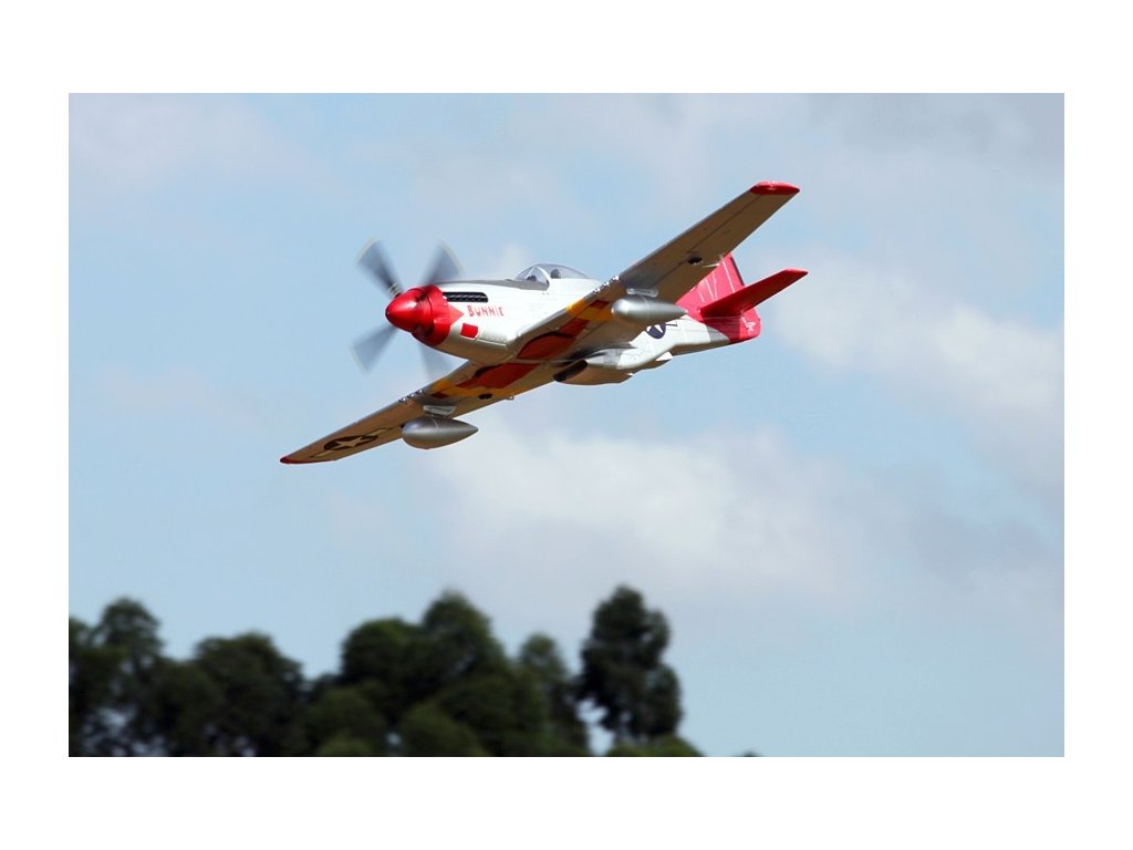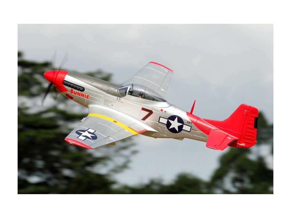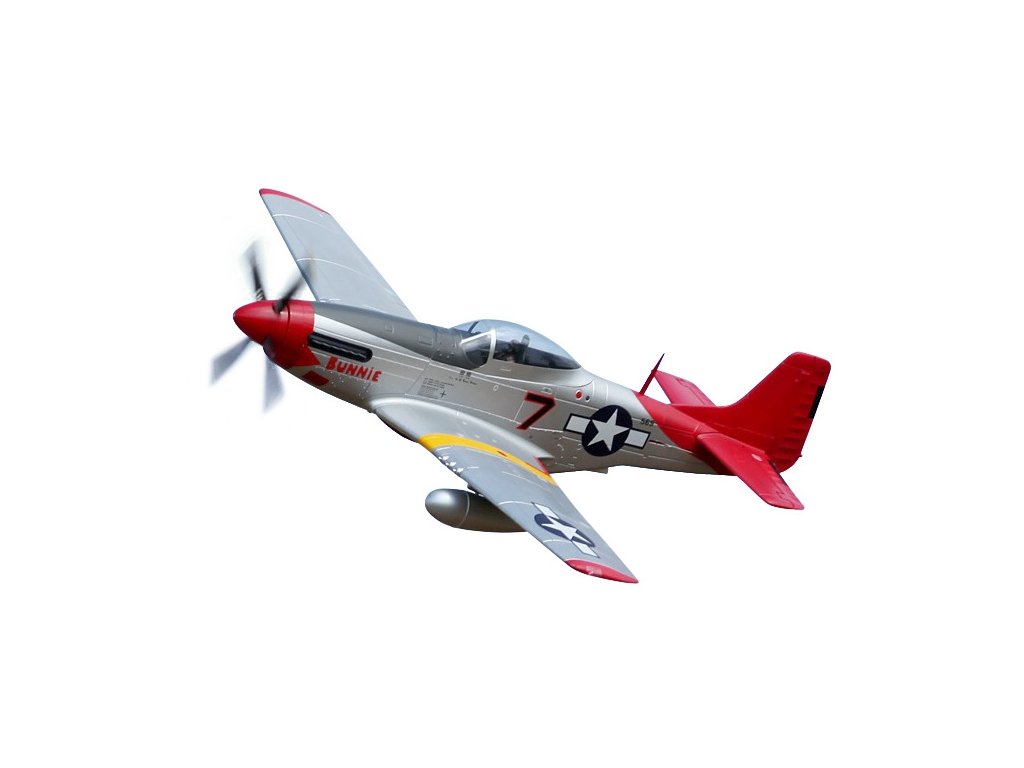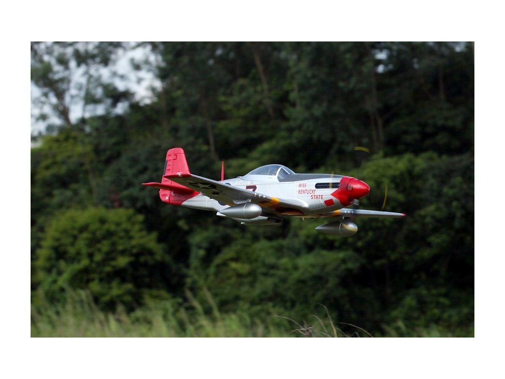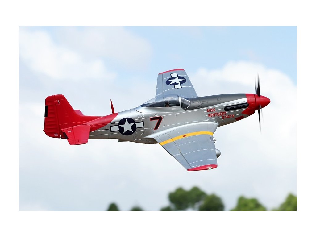 - Autentický design: Model je detailně zpracovaný s realistickými prvky včetně kokpitu, výsuvného podvozku, funkčních klapek a LED navigačních světel. Věrně zachycuje vzhled skutečného P-51D Mustang.