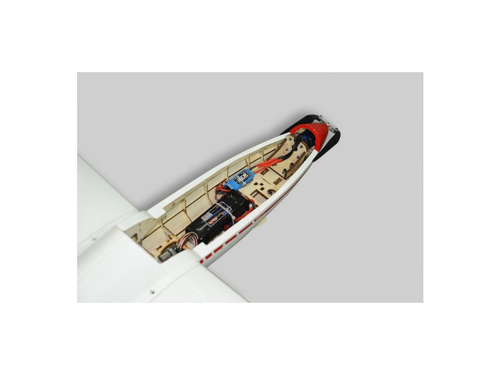 Trup tvoří lehká konstrukce z překližkových přepážek s tuhým celobalsovým potahem potažená nažehlovací fólí Oracover. Přístup k palubní elektronice zajišťuje odnímatelný kryt kabiny pod čirou "bublinou" najdete makety palubních desek, sedaček a řídících pák, za něž můžete usadit pilota, který samozřejmě ve stavebnici nechybí. Do přídě lze nainstalovat dodávané motorové lože, na něž můžete namontovat elektromotor (prodlužovací hřídel pro motory s 5 mm hřídelí je rovněž součástí stavebnice).