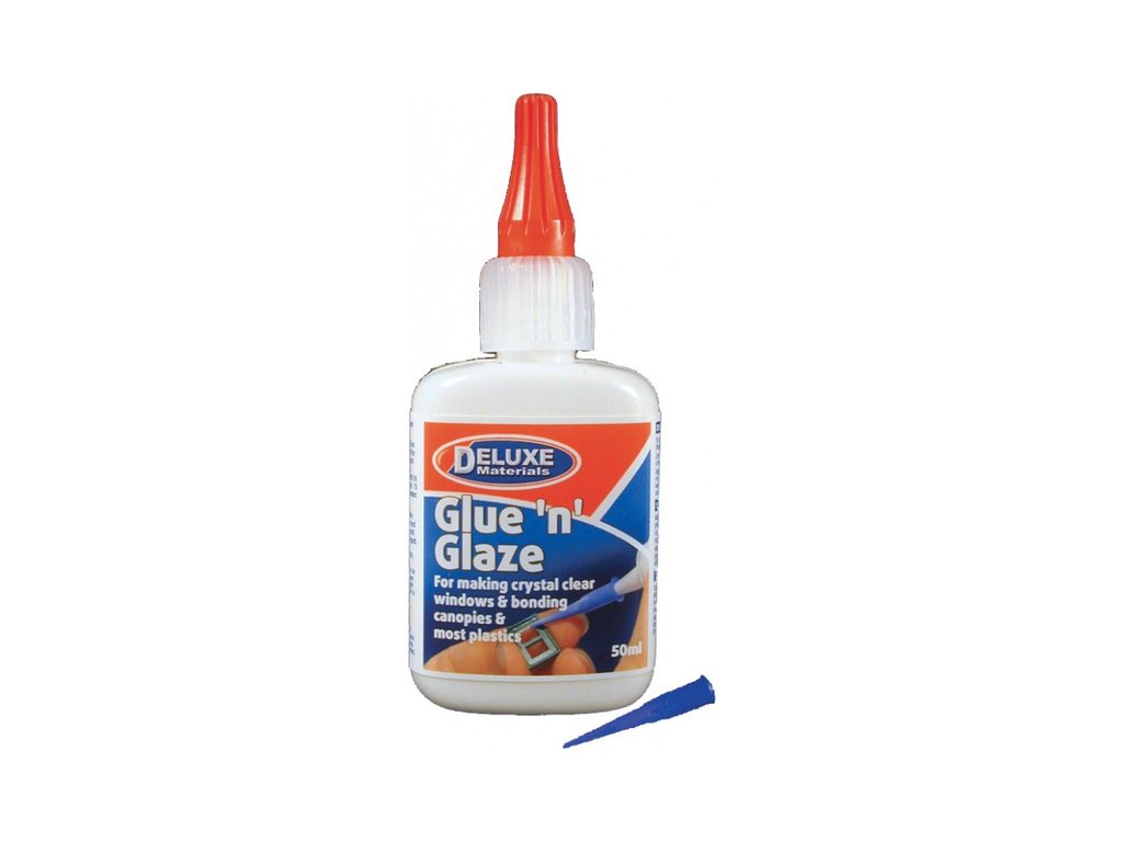 Glue and Glaze speciální netoxické lepidlo husté konzistence na lepení a vytváření zasklených ploch. Je vhodné např. k lepení a pro vytváření malých oken v modelech letadel, lodí, u staveb a dalších konstrukcích. Po vytvrzení je lepidlo čiré. Přebytečné lepidlo lze omýt vodou.