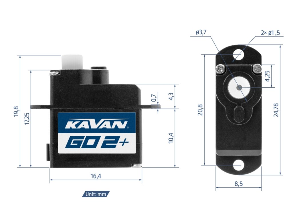 Mikroservo 2,25g s plastovými převody pro malé elektrolety a větroně. Tah 0,48 kg/cm, rychlost 0,09s/60st při 4,8 V. Rozměry 16,3x8,3x20,3 mm, napájení 3,3-5,0V.